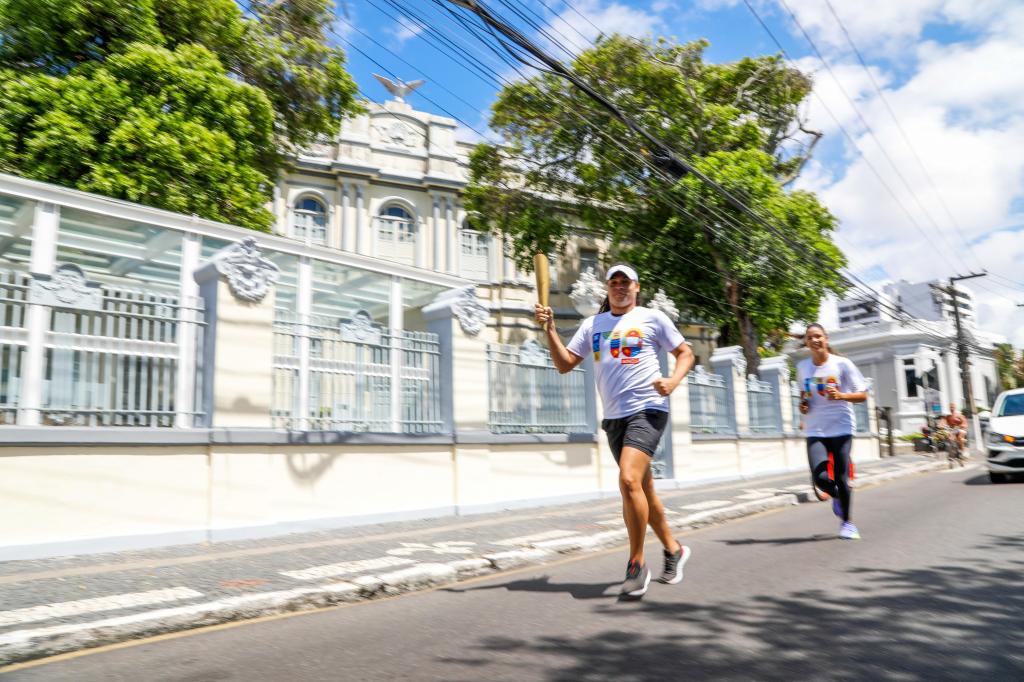 Às 9h, foi realizado o deslocamento do Fogo Simbólico, que saiu da Colina do Santo Antônio e seguiu até a Praça do Mini Golf. A embaixadora da Corrida Cidade de Aracaju 2025, Bárbara Santos, deu início ao deslocamento. Neste ano, a Prefeitura de Aracaju, por meio da Secretaria Municipal de Juventude e Esportes (Sejesp), resgatou a tradição de revezar a chama durante o percurso. Dez representantes da sociedade civil participaram do ato simbólico, que representa a chama que ilumina o futuro da cidade e o orgulho de seus habitantes.