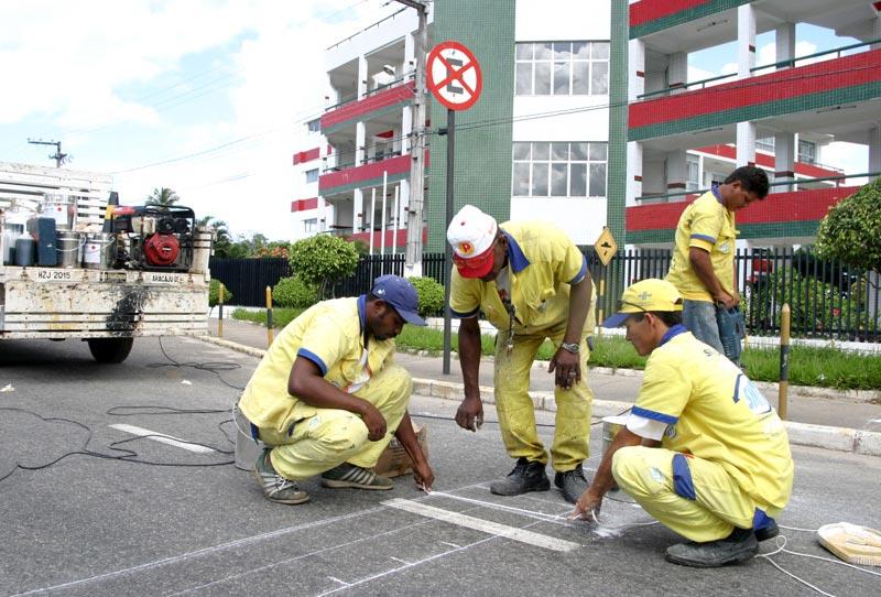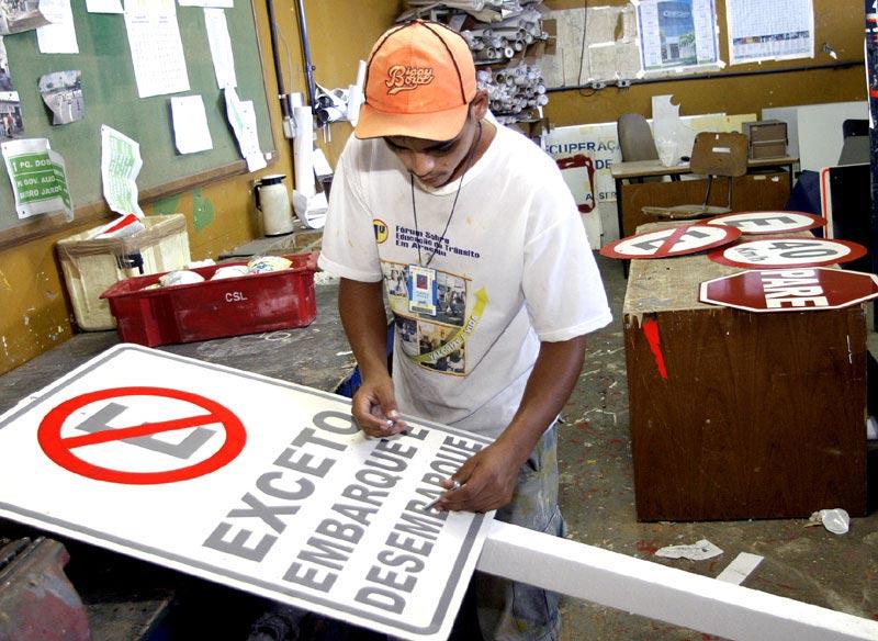 Durante a manhã de hoje, quarta-feira, uma equipe de sinalização de trânsito da Superintendência Municipal de Transportes e Trânsito (SMTT) concluiu a instalação de redutores de velocidade na avenida Tancredo Neves, próximo a faixa de pedestres em frente a Faculdade Pio X. Este serviço preventivo é parte da rotina da Prefeitura de Aracaju para garantir a segurança, além da fluidez no tráfego da cidade. Segundo o diretor de Planejamento da SMTT, Orlando Vieira, toda e qualquer interferência como essa no trânsito da cidade depende de estudos cuidadosos que verificam a real necessidade de instalação ou modificação de sinalização horizontal, vertical ou semafórica. Inicialmente fazemos um levantamento do número de acidentes da região, de uma pesquisa do volume de tráfego para saber o tipo de circulação. Depois passamos para o projeto de sinalização a ser instalada, informou. A diretoria possui uma metodologia aplicada para esse serviço, que sempre vem acompanhada de solicitações e pesquisas que vão orientar a organização da circulação. Tanto para pequenos serviços, como sinalização em escolas a grandes projetos, como da rótula de acesso ao bairro Coroa do Meio ou mesmo o novo acesso ao Hospital na Zona Oeste, um serviço simples que está dando certo. Os dados gerados pelas pesquisas vão nos dar o respaldo para fazer as mudanças necessárias, explicou Vieira. Organização e trabalho preventivo De acordo com o diretor, além da avenida Tancredo Neves, a SMTT atualmente realiza adaptações no trânsito, com diferentes tipos de sinalização, também no bairro São José e no conjunto Santa Lúcia. Outra preocupação da superintendência é com a manutenção dos semáforos e placas da cidade, serviços garantidos pelo funcionamento da Fábrica de Placas. Criada há cinco anos, a unidade permite uma economia e maior qualidade na confecção e restauração de placas indicativas. A fábrica possui um sistema de reciclagem de placas, recuperando todas as placas velhas com defeitos de sinalização e deterioradas pelo tempo, que são recolhidas da rua e recuperadas para serem devolvidas ao meio urbano. A fábrica também trabalha com estoque, contando sempre com uma boa quantidade de placas prontas na reserva para casos de emergência. Essa medida adotada pelo município permite a agilidade na recuperação e instalação de nova sinalização. Também são fabricadas placas móveis, como cavaletes, placas de Siga e Pare, que servem como auxílio na sinalização dos eventos e pintura das faixas de pedestre, colocação de prismas e ´tachões´ (placas luminosas) nas ruas da cidade.
