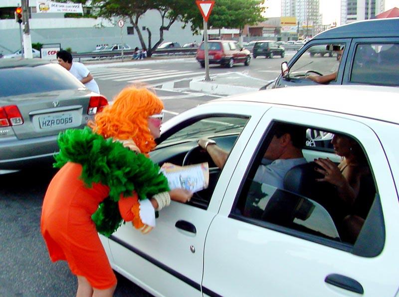 A Superintendência Municipal de Transporte e Trânsito (SMTT), desde o ano de 2003, conta com a participação de um grupo de teatro em seu trabalho de orientação no trânsito à pedestres e motoristas. Com uma formação inicial composta por 10 estagiários de Artes Visuais da Universidade Federal de Sergipe (UFS), quatro deles já atores na época, a iniciativa surgiu com o objetivo de informar, especialmente às crianças, Educação no Trânsito através da encenação de peças teatrais. Tendo visitado diversos colégios da capital, mais de 7 mil alunos já assistiram às encenações do grupo. Depois de firmado um contrato com o Grupo Imbuaça, a SMTT estendeu as apresentações para as ruas da cidade durante o ano passado. Apesar da nova formação, composta pelo Grupo Oxente de Teatro, o trabalho resgata a idéia inicial. A ação é desenvolvida pelos atores André Santana (único integrante do grupo anterior), Rosana Costa, Gustavo Floriano e Célia Tavares. De forma alegre e descontraída, os atores transmitem nas ruas, escolas, associações de moradores e bares da cidade, informações através da encenação de peças teatrais que retratam fatos diários ocorridos no trânsito. Além disso, o grupo da SMTT participa de campanhas educativas - a exemplo de ´Volta às aulas´ e ´Projeto Verão´ -, eventos e blitz nas ciclovias. Com um roteiro específico de acordo com cada faixa etária, os atores encenam, através da caracterização de cores fortes e vibrantes, pintura e perucas, durante 20 minutos, noções de respeito ao trânsito. Para o público infantil, assim como para os idosos, a orientação maior dos atores é com o cuidado ao atravessar as ruas e respeito à faixa. Já para os adolescentes, os temas mais abordados são ´Bebida e Direção´ e ´Equipamento de segurança das motocicletas e bicicletas´. Segundo Ivaneide Nascimento, coordenadora do Projeto, o grupo também se apresenta em empresas sempre que a SMTT faz palestras, em especial as que têm um grande número de ciclistas. A população só tem a ganhar com essas apresentações, que reúnem educação para o trânsito, arte e informação. Nossa preocupação é fortalecer a segurança do cidadão, contribuir para que ele tenha um comportamento seguro no trânsito. E é por isso que apoiamos esse trabalho, que leva educação através da arte para o povo, enfatiza. Dentre as peças já encenadas pelo grupo de teatro da SMTT estão: O Dia do Pare, SMTT é Show e O Santo e a Porca, de Ariano Suassuna. Programação 7, 8 e 9 de junho - Blitz nas ciclovias da cidade 8 de junho - Inauguração da Ciclovia da Avenida Coelho e Campos 11 de junho - 2º Passeio Ciclístico dos Namorados, saindo do Parque Augusto Franco (Sementeira) até o Arco da Atalaia.