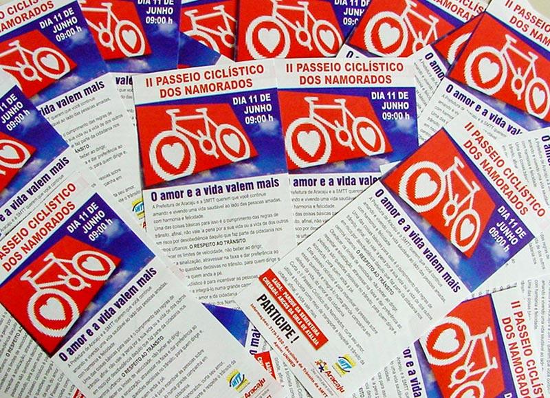 Continuam abertas até o próximo sábado, dia 10, as inscrições para o II Passeio Ciclístico dos Namorados que acontece no domingo, dia 11 de junho. Além de comemorar a data mais romântica do ano, o evento busca incentivar a prática esportiva e a utilização dos 23,7 quilômetros de ciclovias da cidade. Promovido pela Superintendência Municipal de Transportes e Trânsito (SMTT), o evento conta com a parceria da Federação Sergipana de Ciclismo (FSC) e do grupo Streetbike. Nós estamos com pontos de inscrição na Escola de Trânsito da SMTT, no supermercado Extra e nos shoppings Riomar e Jardins. No ato da inscrição, o participante recebe um canhoto numerado para, com ele, ter direito a camiseta do passeio e ao sorteio dos brindes. Também haverá outras premiações, como para a bicicleta mais decorada, a mais original, o ciclista mais idoso etc, informou a coordenadora de Educação no Trânsito, Ivaneide Nascimento. Durante a primeira edição do passeio, realizada no ano passado, foram reunidos cerca de 900 participantes no percurso, que vai do Parque da Sementeira, percorre a Avenida Beira Mar até a chegada, nos arcos da Orla da Praia Atalaia. A expectativa dos organizadores é que o número de pessoas aumente esse ano. E, para incentivar a maior participação, serão sorteados diversos brindes para os inscritos. Entre os brindes que serão distribuídos estão: bicicletas, jantar e diárias em hotéis para o casal, eletrodomésticos, dentre outras cortesias, como uma bolsa integral de um curso pré-vestibular. A saída do passeio acontece às 9 horas do Parque da Sementeira e um mini trio elétrico vai garantir a animação dos ciclistas. O Serviço de Atendimento Móvel de Urgência (Samu - 192 Aracaju) dará assistência aos participantes durante todo o trajeto. Na concentração para a largada, os ciclistas terão uma revisão técnica grátis nos equipamentos de segurança de sua bicicleta e também receberão orientações sobre como se comportar no dia-a-dia do trânsito e conduzir sua bicicleta com segurança.