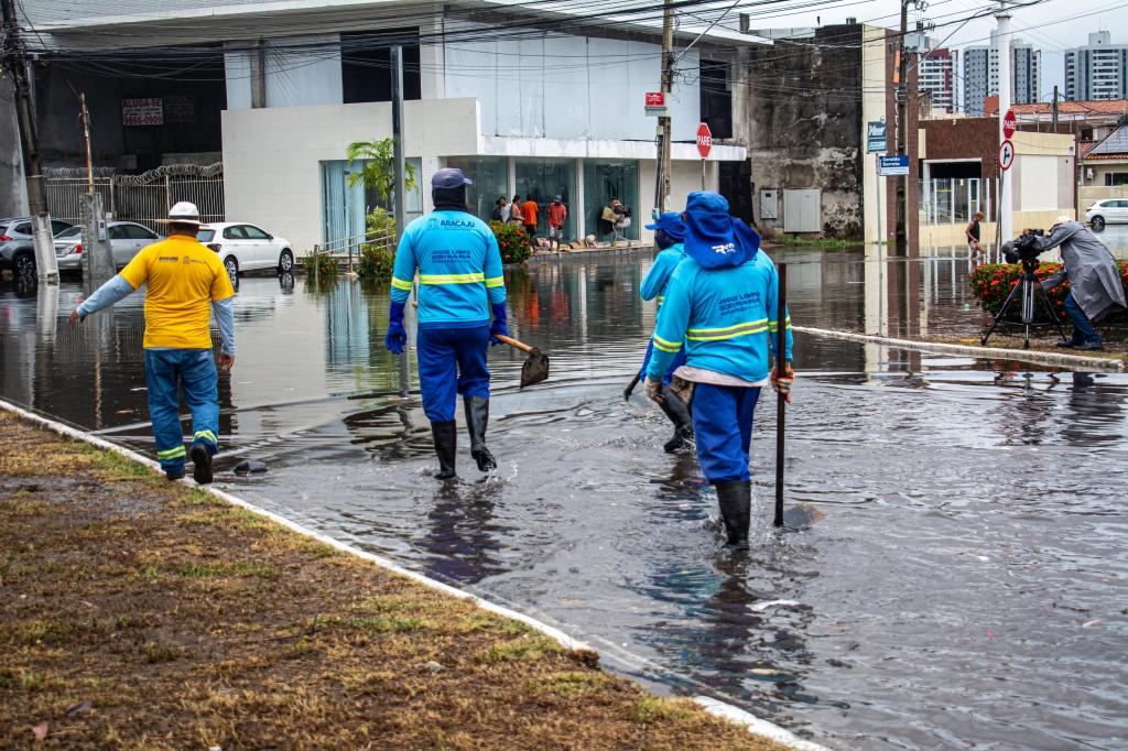 A Prefeitura de Aracaju, por meio da Empresa Municipal de Serviços Urbanos (Emsurb) intensificou, neste sábado, 12, as suas atividades em diversos pontos da cidade de Aracaju em resposta às fortes chuvas registradas durante a madrugada. As ações tiveram como objetivo minimizar os impactos provocados pelos alagamentos e obstruções nas vias públicas.