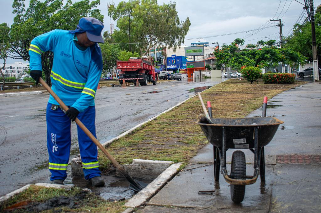 Segundo Christopher Prado, gerente de Limpeza Urbana da Emsurb, os trabalhos começaram logo nas primeiras horas da manhã. “Iniciámos hoje pela manhã operações através da DIROP, por meio da nossa gerência de limpeza urbana. Fomos primeiramente à Praça da Imprensa para fazer a limpeza dos bueiros com a equipe de canal. Após conseguirmos reduzir o nível da água, deslocamos outra equipe para o bairro Jardins, próximo à Maravilha Motos, onde também havia necessidade urgente desse serviço. A força da água acaba levando resíduos para as bocas de lobo e obstruindo a passagem. Também já enviámos uma equipe para Santa Maria, onde o barro desceu e tomou toda a rua. Lá, atuamos com irrigação para a lavagem, com equipe operacional para a limpeza e com apoio de uma retroescavadeira que já iniciou a raspagem do material”, detalhou.