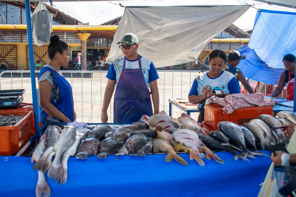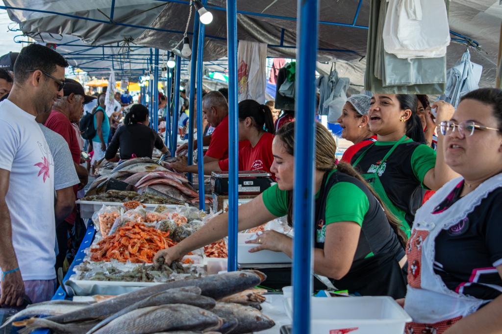 A comerciante Lidiane dos Santos Pinheira compartilha o entusiasmo com a feira e reforça a tradição familiar no ramo. “A gente tem que ter educação e respeito. O nosso trabalho é feito com amor. Gostamos de comercializar, e essa organização ajuda muito no fluxo de pessoas”, afirma, entre os chamados aos clientes com seu conhecido bordão: “Ainda tem peixe, chega pra loja!”.