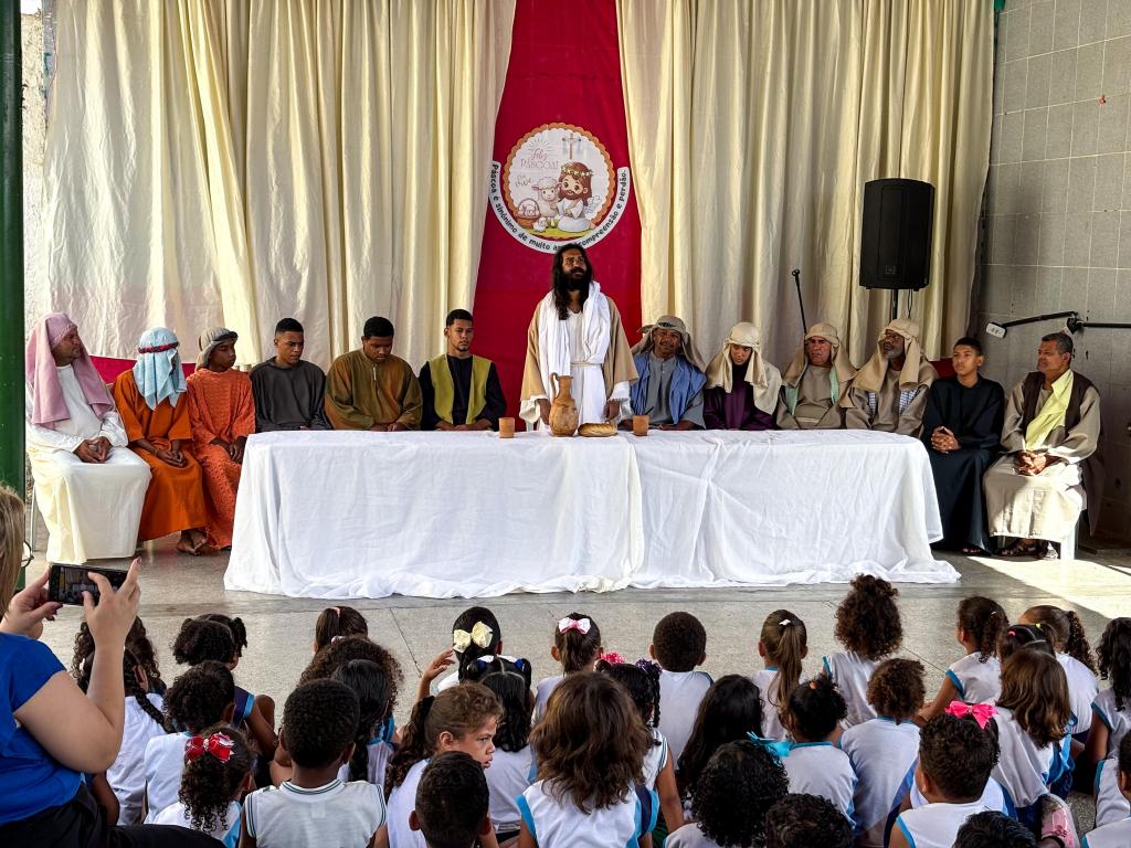 “Apresentando a Santa Ceia e os discípulos de Cristo aos alunos, proporcionamos um momento de enriquecimento cultural, e isso é muito importante para que possamos saber mais sobre Jesus Cristo, sobre o que Ele veio fazer aqui e sua trajetória. Principalmente para as crianças, para que elas possam entender que a Páscoa é virtuosa em nossas vidas e que seja um momento de partilha”, enalteceu o ator.