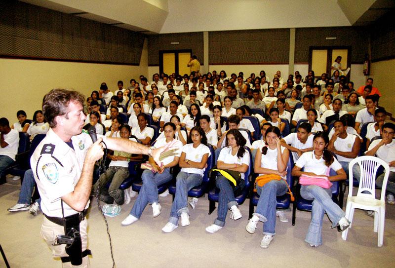 Você e a moto: uma união feliz. O tema da Semana Nacional de Trânsito foi o abordado hoje, 20, no III Fórum de Educação para o Trânsito que está sendo realizado pela Superintendência Municipal de Transportes e Trânsito (SMTT). Até o dia 25 acontecem palestras no auditório do Sest/Senat, na avenida Tancredo Neves. O tema foi apresentado pelo instrutor da Polícia Rodoviária Federal, Lenaldo Menezes Mota, para estudantes do ensino médio. Vamos abordar o uso da motocicleta no trânsito, como utilizar a direção defensiva com o objetivo de evitar acidentes, já que numa eventual colisão com um carro, o dano maior é sempre para o motociclista, contou o instrutor Mota aos futuros condutores. Ele utilizou vídeos de acidentes para ilustrar o risco sempre presente e contou um pouco de sua experiência de 19 anos conduzindo uma moto. Nessa manhã estiveram presentes os estudantes dos colégios Ômega, São Rafael e Patrocínio São José. A assistente social dessa última escola, que acompanhou os estudantes, Hélia Nascimento Santos, contou que a escola realiza um projeto interdisciplinar de cidadania. O trânsito é um dos temas inclusos e estar aqui hoje é um reforço a mais, pois só vem agregar valores ao nosso trabalho, elogiou. Não adianta somente os órgãos como a SMTT, o Departamento Nacional de Trânsito, o CPTRAN e outros fazerem as campanhas educativas se a sociedade não acatar junto com a gente. Por isso é importante que vocês, jovens, estejam aqui, disse a instrutora da Escola de Trânsito da SMTT, Selma Dantas. Ao final do dia de palestras, acontece a apresentação da esquete teatral Quem corre muito chega primeiro no céu, com integrantes do grupo Oxente. Os estudantes também recebem um kit educativo com material e jogo informativo e camiseta. O tema nacional abordado pelo Denatran visa minimizar o crescente índice de acidentes envolvendo motociclistas, ocasionado, em grande parte, pelo aumento do número de motos no trânsito conduzidas por pessoas sem a devida prudência e perícia. As palestras também são abertas para o público em geral. Teatro da SMTT Paralelo ao Fórum, blitze são realizadas na cidade, com farta distribuição de panfletos educativos, além da apresentação do grupo de teatro da SMTT. No dia 25, segunda-feira, os Colégios Arquidiocesano e Salesiano vão receber o teatro e equipes da SMTT que desenvolverão trabalhos sobre o trânsito. Mais de 1.200 estudantes já participaram do Fórum.