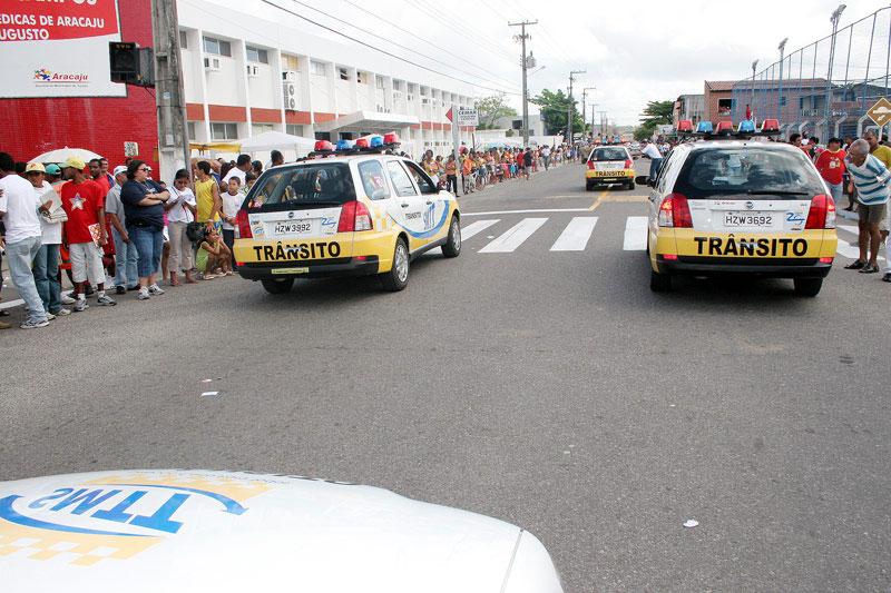 A Superintendência Municipal de Transportes e Trânsito (SMTT) mais uma vez se empenhou na organização do tráfego durante a realização do Desfile Cívico da rede municipal de ensino, ocorrido na manhã desse domingo. A rua Bahia, no bairro Siqueira Campos, local do desfile, foi interditada a partir das 5 horas da manhã. Também foram interrompidas as ruas Porto Alegre e Santa Catarina. O tráfego por essas vias que dão acesso a zona sul e centro da cidade foi desviado pelas avenidas Maranhão e Desembargador Maynard. Segundo o major Lima Alves, que comandou a operação, as empresas de ônibus foram orientadas quanto aos desvios e 48 agentes de trânsito trabalharam para orientar motoristas e também pedestres quanto a localização de parada dos ônibus. O patrulhamento contou ainda com dez motos e oito viaturas, que além de organizarem a movimentação de veículos e pessoas no local, também fez parte do desfile organizado pela Secretaria Municipal de Educação (Semed) e que esse ano teve o esporte como tema principal. O Major Lima Alves garantiu que, como todos os anos, o evento contou com muita tranqüilidade. Nós fazemos um trabalho de comum acordo com a comunidade, divulgamos um ofício circular sobre o evento, que já faz parte do calendário aracajuano, tanto que não fizemos nenhum guinchamento e não tivemos nenhum problema quanto a isso por conta do entendimento da população que já existe. A Prefeitura de Aracaju também deu um reforço maior com a divulgação nos meios de comunicação informando a população, completou o major.