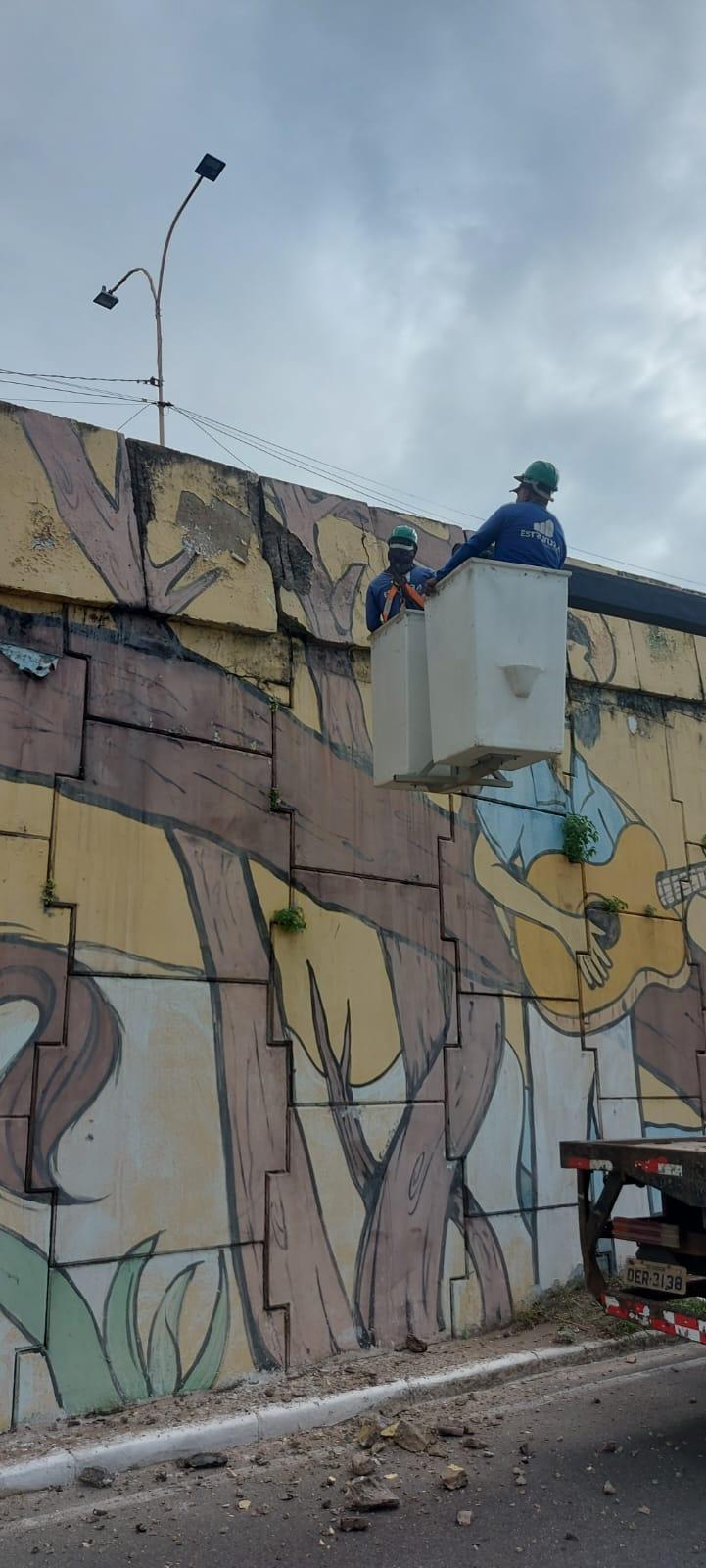 A Prefeitura de Aracaju, por meio da Empresa Municipal de Obras e Urbanização (Emurb), iniciou, na tarde desta terça-feira, 6, o serviço de remoção da camada de concreto que recobre a armadura das guardas rodas do elevado da Hermes Fontes, responsável por conectar as avenidas Francisco Porto e Gonçalo Rollemberg Leite.