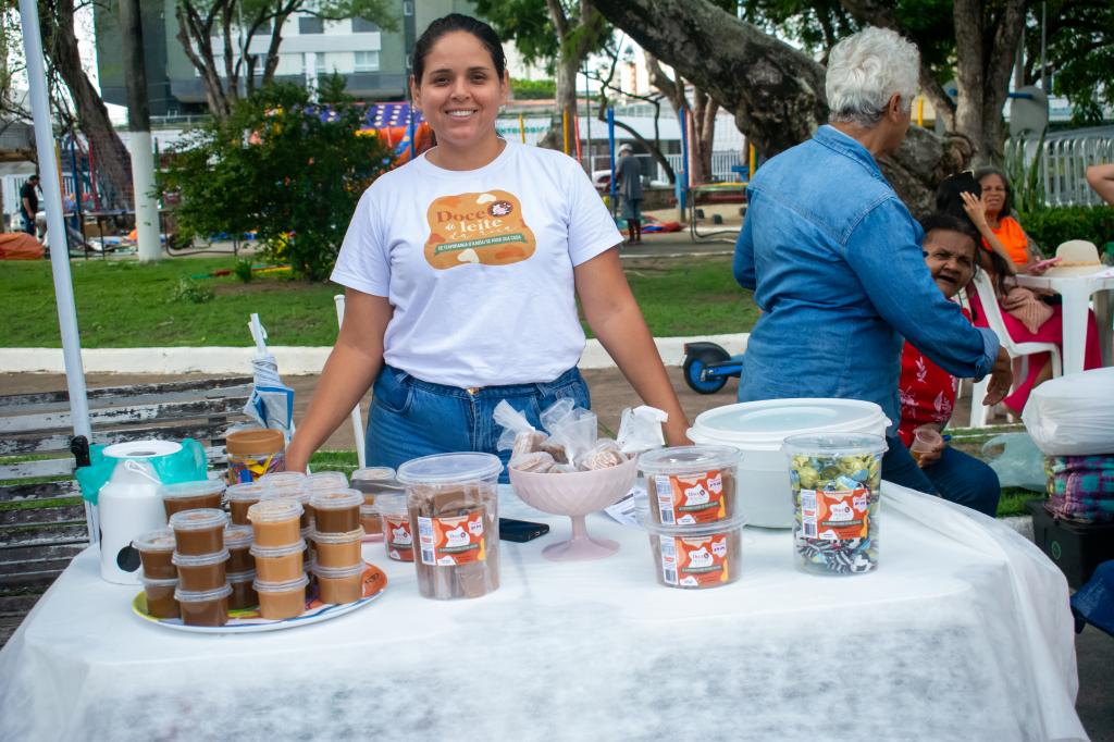 Cleide Silveira tem uma relação profunda com a terra e na pandemia decidiu começar um negócio, com a receita de leite da falecida sogra. Quando questionada por seu entusiasmo em vender na praça Tobias Barreto, pontuou: "Gosto muito do contato com o público, de conversar com as pessoas, oferecer um doce; essa troca para mim é muito boa, por isso acredito que com a nova reestruturação temos uma ampliação bem legal do espaço".