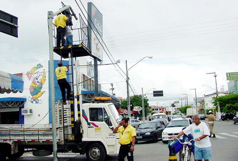 Aracaju possui 120 pontos semaforizados que recebem a manutenção permanente da Superintendência Municipal de Transportes e Trânsito (SMTT). Uma equipe de sinalização de trânsito percorre a cidade com um caminhão à procura de algum tipo de falha nas sinaleiras. Além desse trabalho, a população contribui bastante através da Ouvidoria SMTT sempre que um problema interfere no funcionamento dos semáforos. A equipe circula de segunda à sexta-feira e fora desse horário existem os plantões para atender qualquer necessidade. Geralmente surgem problemas com lâmpadas queimadas depois de uma forte chuva, quando a equipe também fica de sobre aviso. E ainda com a falta de energia que interrompe a temporização do semáforo, explicou o assessor de comunicação da SMTT, Jairo Alves. Nos casos de interrupção do fornecimento de energia que são programadas pela empresa fornecedora, há uma comunicação para a SMTT que mobiliza os agentes de trânsito para orientar os condutores nos locais onde o semáforo não está funcionando. Quando há a necessidade de troca dos semáforos defeituosos, a manutenção é feita na própria oficina da SMTT, reduzindo os custos para o município. De acordo com o assessor não tem havido grandes problemas nessa questão, pois a sinalização da cidade é nova e a manutenção é permanente. A poplação tem colaborado muito, pois são vários os pontos em toda a cidade e essa colaboração permite que a substituição de lâmpadas queimadas e outros problemas aconteçam com maior agilidade, completou. A população pode acionar a SMTT através da Ouvidoria nos números (79) 3249-4646 / 3179-1436.