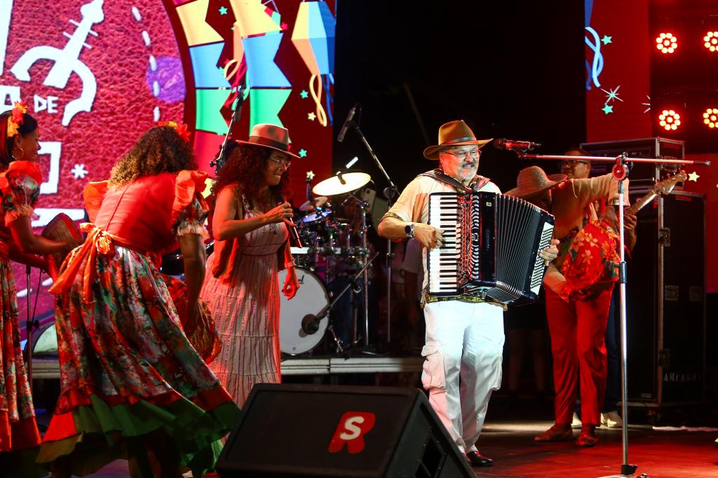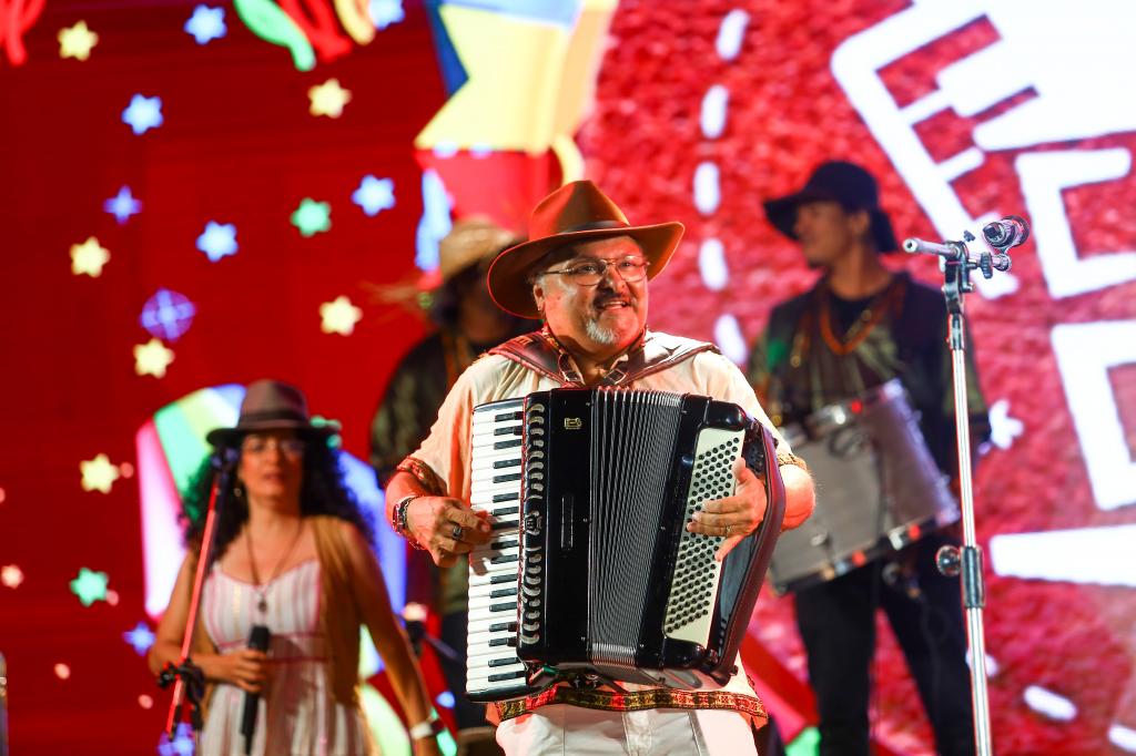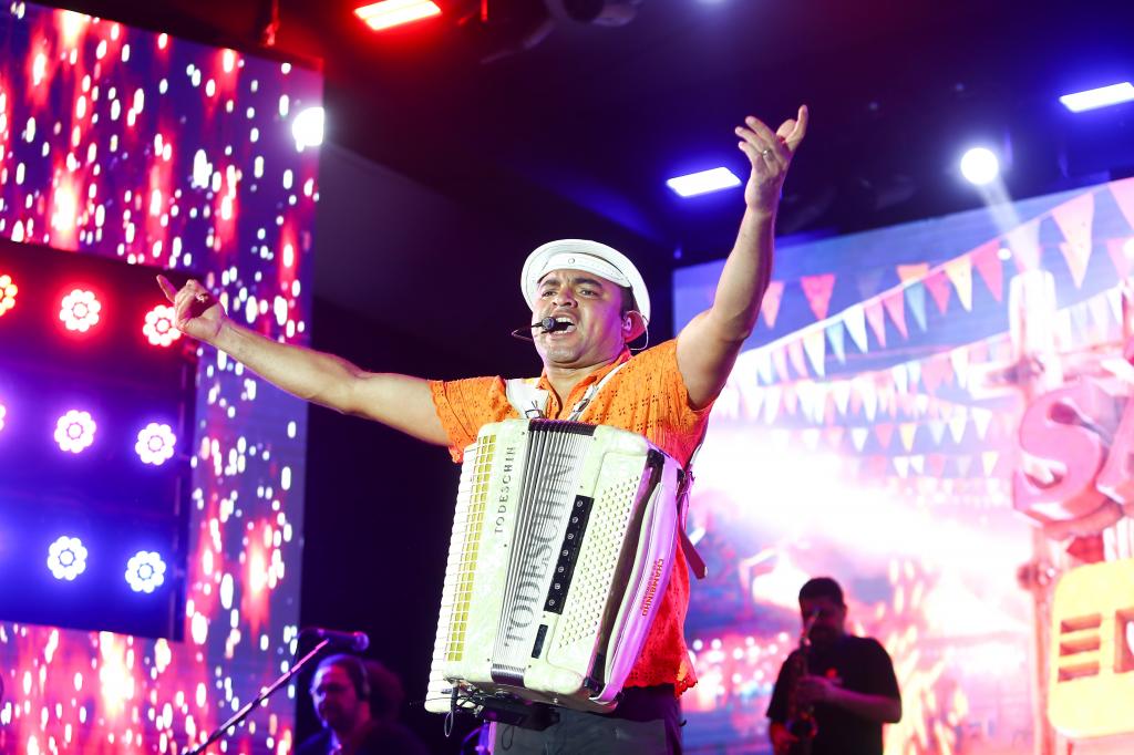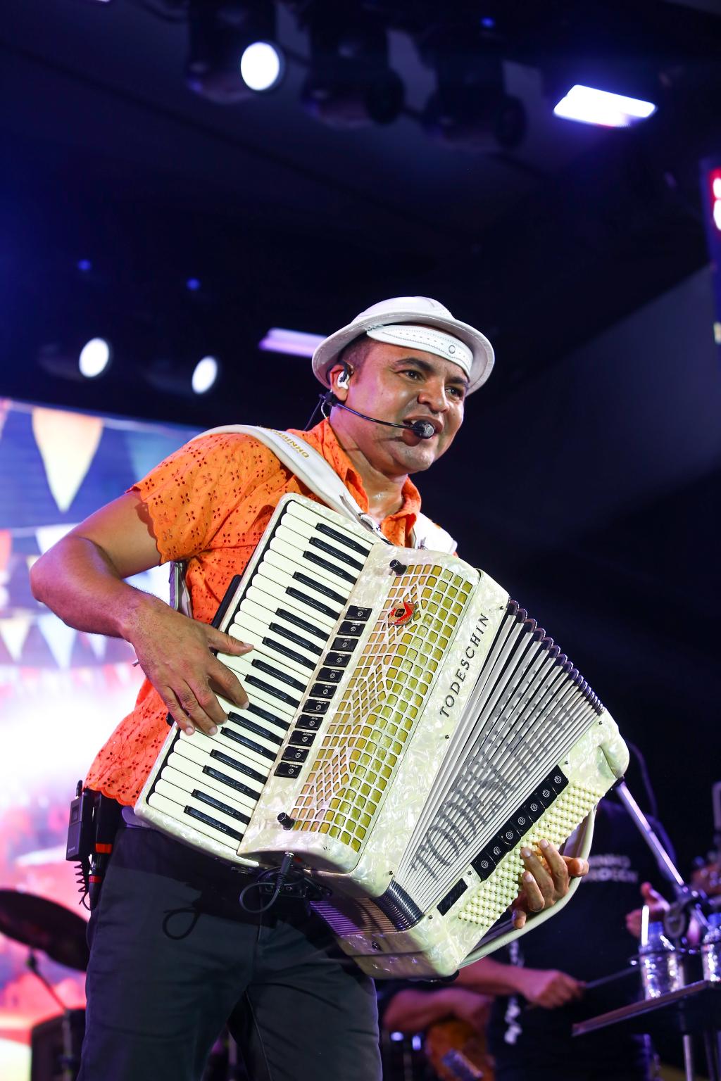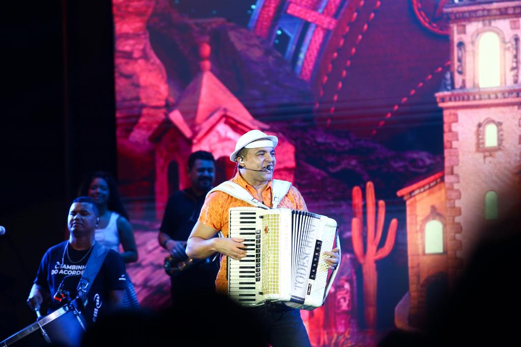 Na sequência, foi a vez de Chambinho do Acordeon emocionar o público com sua autenticidade. Em sua primeira apresentação no Forró Caju, o artista trouxe um repertório marcado por clássicos do forró e homenagens a Luiz Gonzaga, figura que também interpreta no cinema. Chambinho foi um dos protagonistas do filme Gonzaga: De Pai pra Filho (2012) e se prepara para voltar às telonas no papel do Rei do Baião no longa Luiz Gonzaga – Légua Tirana, que estreia em agosto nos cinemas de todo o país. “No Forró Caju é a minha estreia. Já toquei em alguns eventos particulares aqui, em casas de show, mas sempre sonhei em me apresentar nesse palco. Essa é a minha grande oportunidade. Estou muito feliz, confesso que um pouco ansioso, mas muito realizado. Estamos com banda completa, um repertório com xote, xaxado, baião e muito arrasta-pé. E trago uma novidade: vamos exibir o trailer do filme Légua Tirana, dirigido por Marcos Carvalho”, revelou.