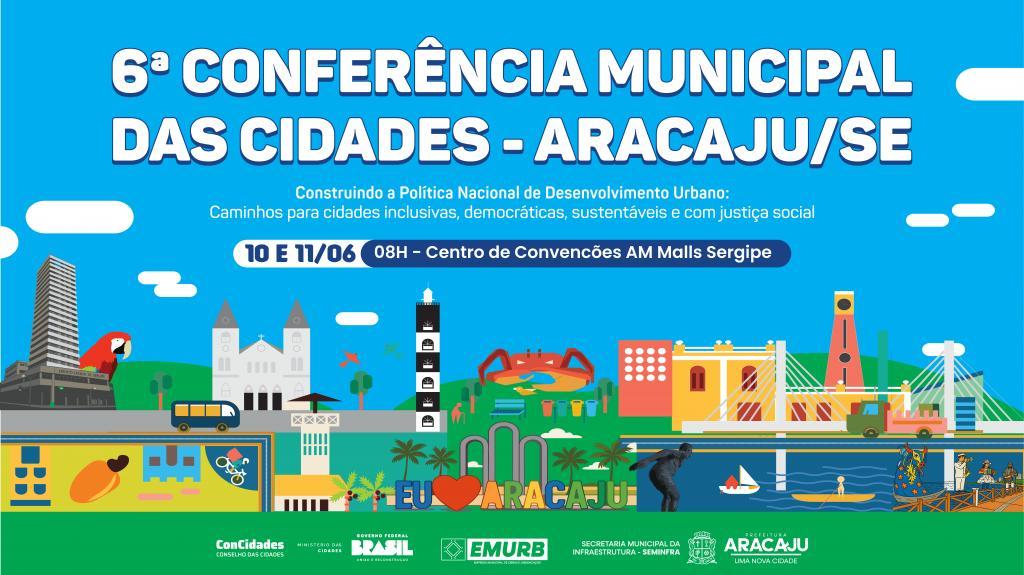 A Prefeitura de Aracaju, por meio da Secretaria Municipal de Infraestrutura (Seminfra), promoverá, nos próximos dias 10 e 11, a 6ª Conferência Municipal das Cidades (CMC). O evento terá início às 8h, no Centro de Convenções AM Malls Sergipe, e tem o objetivo de discutir os desafios urbanos locais e as propostas de desenvolvimento para os municípios. As inscrições serão feitas presencialmente.