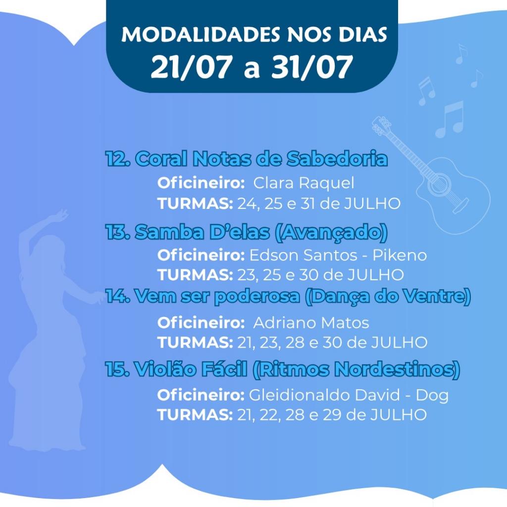 As aulas, que acontecerão de 1º a 31 de julho, integram a programação de uma oferta extra da unidade, realizada durante o recesso letivo, e complementa os cursos regulares oferecidos por meio dos editais semestrais da escola.