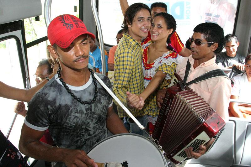 Com o objetivo de fortalecer as ações culturais ligadas ao período junino, a Prefeitura de Aracaju promove atividades para integrar a população em geral e turistas às tradicionais comemorações nordestinas. Uma destas iniciativas é o projeto ´Transportando o Forró´, que por meio de uma parceria entre a Superintendência Municipal de Transportes e Trânsito (SMTT) e a Fundação Municipal de Cultura, Turismo e Esporte (Funcaju), leva trios pé-de-serra e um casal de atores aos ônibus da capital. Esta iniciativa busca tornar a viagem dos passageiros mais animada. Enquanto os músicos tocam típicos forrós, os atores distribuem programação do Forró Caju e convidam os passageiros a participar dos festejos juninos da cidade. O projeto ´Transportando o Forró´ acontece até o final deste mês e, além de proporcionar a interação nos ônibus, todos os terminais de integração contam com apresentações de trios pé-de-serra entre as 11h30 e 13h30 e das 17 horas às 19 horas. Informações: (79) 3179-1432. Veja mais... Projeto ´Transportando o Forró´ é iniciado com sucesso entre usuários do transporte coletivo