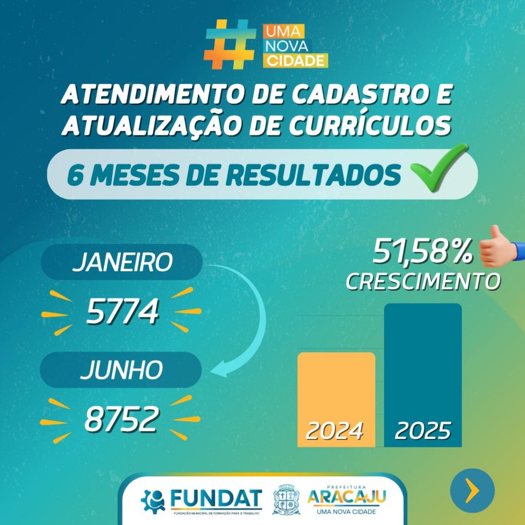 Diante desses resultados positivos, a Prefeitura de Aracaju, por meio da Fundat, vem promovendo um trabalho transformador no município, fortalecendo a política de empregabilidade e ampliando o acesso à qualificação profissional. Os dados do primeiro semestre refletem o compromisso da gestão com a geração de oportunidades e o desenvolvimento econômico da capital.