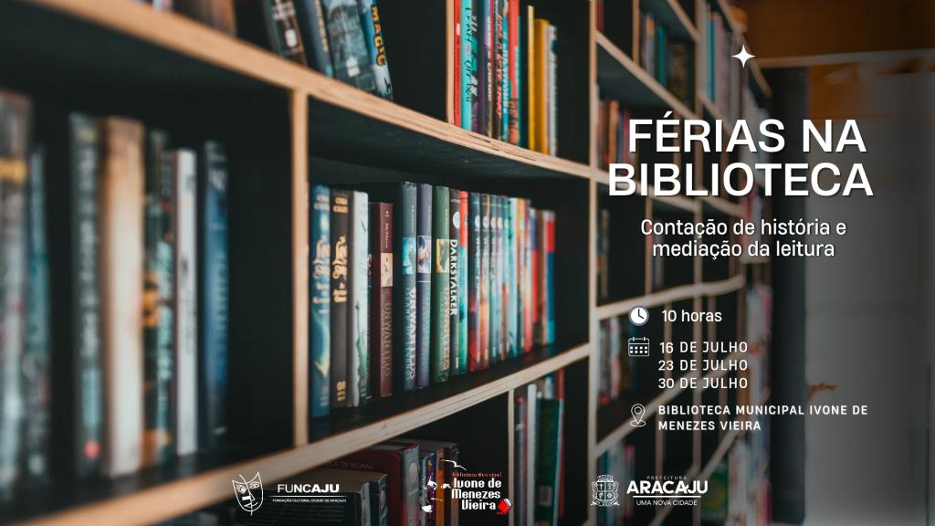 A Fundação Cultural Cidade de Aracaju (Funcaju), por meio da Biblioteca Municipal Ivone de Menezes Vieira, no bairro Farolândia, realiza o projeto Férias na Biblioteca nos dias 16, 23 e 30 de julho, às 10h, no espaço da biblioteca. O evento é aberto ao público, com foco principal nas crianças da comunidade.