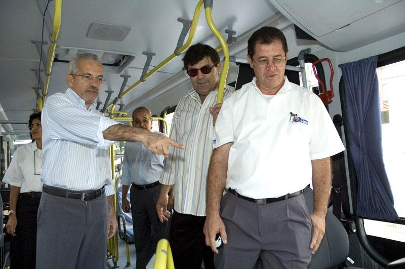 O prefeito de Aracaju, Edvaldo Nogueira, entregou na manhã desta terça-feira, em frente ao Palácio Inácio Barbosa, quatro novos ônibus que irão fazer parte da frota do transporte coletivo da capital e Grande Aracaju. No início deste ano entregamos 10 ônibus e hoje estamos entregando mais quatro, dos quais três possuem acesso para deficiente. Esse esforço é de buscar paulatinamente que 100% da nossa frota tenha rampa para cadeirantes", disse Edvaldo Nogueira. "Esses ônibus já vêm com algumas alterações importantes, a primeira é que existe uma refrigeração para o motorista, para ele se sentir mais confortável para realizar seu trabalho. A segunda são as cadeiras que são acolchoadas, não são mais aquelas de plástico. Outra novidade importante é que esses ônibus são ecologicamente corretos, pois já estão adaptados para funcionar com o biodisel, completou o prefeito. As novas aquisições fazem parte da política da Prefeitura Municipal de Aracaju (PMA) de renovação da frota do transporte coletivo, proporcionando mais conforto e qualidade para os usuários de ônibus. O objetivo da nossa administração é sempre de melhorar a vida do cidadão, nesse caso dos usuários do transporte coletivo. Nós queremos até 2008 fazer uma importante renovação na frota de Aracaju, informou Edvaldo Nogueira. Os novos ônibus também contam com marcação diferente nas poltronas para idosos e deficientes físicos. Até o próximo mês, devem ser entregues à população mais 21 novos ônibus e até o final deste ano a meta é chegar ao número de 100 novos ônibus em 2007. A atual média de idade da frota da Grande Aracaju é de oito anos. Com as novas aquisições, já no próximo mês, deve cair para menos de sete anos.