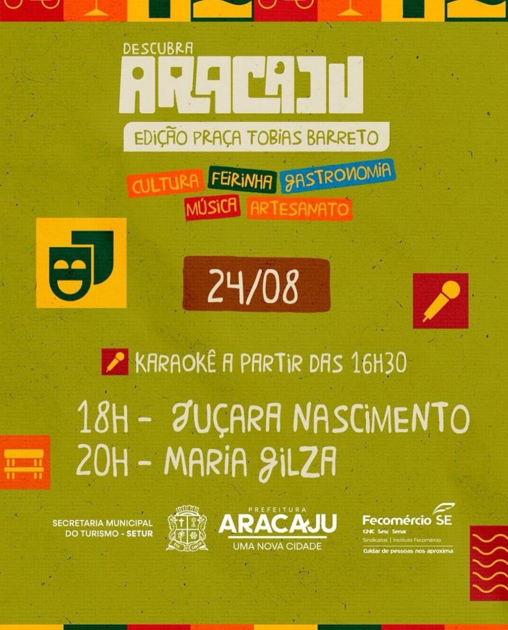Neste final de semana, o projeto permanente “Descubra Aracaju” terá três edições: Mirando as Artes, Orla do Bairro Industrial e Praça Tobias Barreto. A iniciativa torna-se possível graças a um termo de fomento firmado entre a Prefeitura de Aracaju, por meio da Secretaria Municipal do Turismo (Setur), e a Federação do Comércio de Bens, Serviços e Turismo do Estado de Sergipe (Fecomércio-SE).