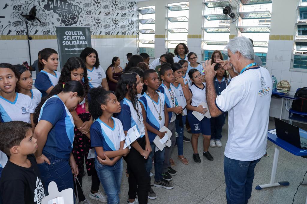 Outra vertente bastante trabalhada pela Semed no evento foi a conscientização ambiental. Em uma das salas, educadoras da Cooperativa dos Agentes Autônomos de Reciclagem de Aracaju (Care) abordaram como é o processo de reciclagem e os impactos positivos que a prática proporciona ao meio ambiente.