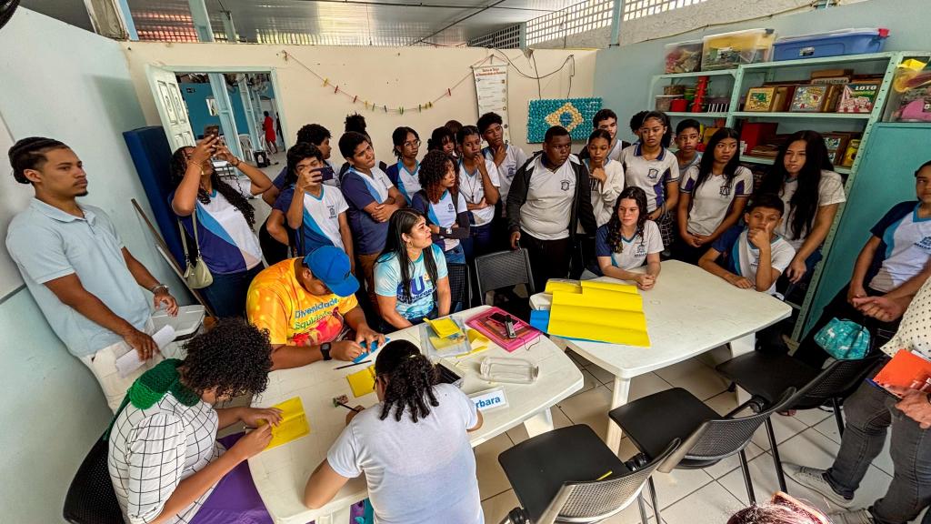 Além dessas, teve a oficina de atividade diária, em que os alunos da EMEF assistiram atentamente à apresentação de Gilmar Otávio. Lá, os jovens puderam compreender que, dentro do campo neurodiverso, há trabalhos específicos para a promoção da aprendizagem. No local, os atendidos recebem orientações sobre tarefas do dia a dia, como lavar roupa, amarrar cadarço e limpar o fogão. Na oficina pedagógica, foi mostrado como são os trabalhos adaptados para leitura e matemática.