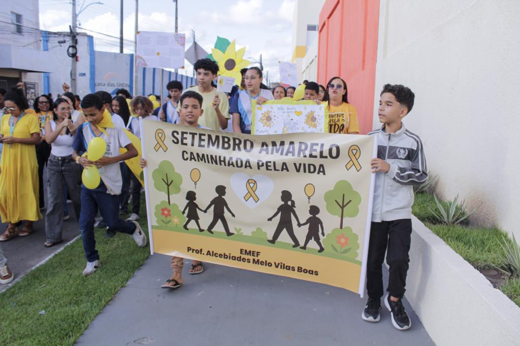 Setembro Amarelo: cerca de 200 alunos da Alcebíades Melo realizam caminhada pela valorização da vida