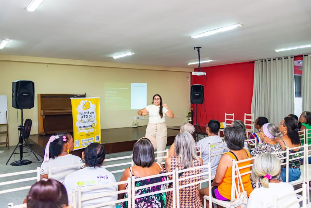 A programação também fez referência ao Setembro Amarelo, mês de prevenção ao suicídio e valorização da vida. A técnica da SerMulher, Hellen Lira, conduziu uma roda de conversa sobre saúde mental e enfrentamento à violência contra a mulher. "Estivemos presentes aqui no Ibem para falar sobre o Setembro Amarelo, os tipos de violência contra a mulher e reforçar que não devemos debater assuntos tão importantes apenas nos meses temáticos. Foi um evento muito rico, com participação ativa da comunidade, e o nosso papel é sempre ter uma escuta atenta para ouvir as mulheres", ressaltou.