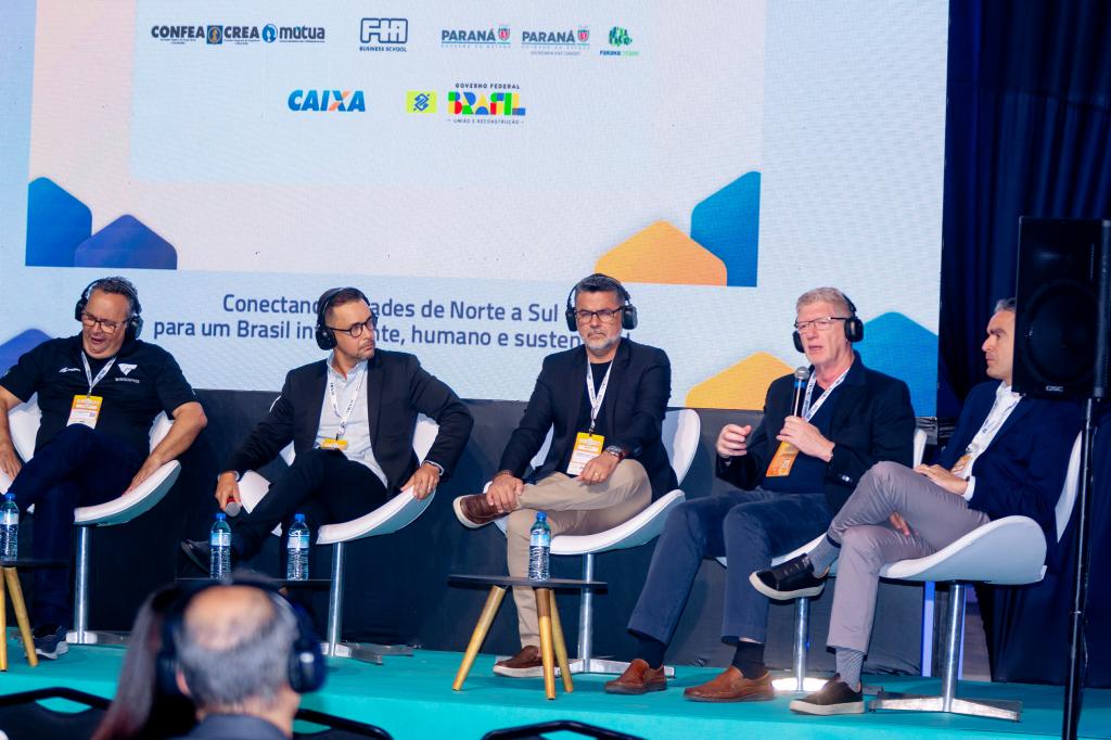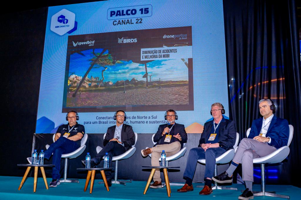O debate foi mediado por Tony Andrade, diretor comercial da Droneportos do Brasil, e contou com a participação de Leo Szterenzys, CEO da Birds; Augustinho Simões, diretor de operações e desenvolvimento de drones da Synerjet; e Guto Issa, prefeito de São Roque.