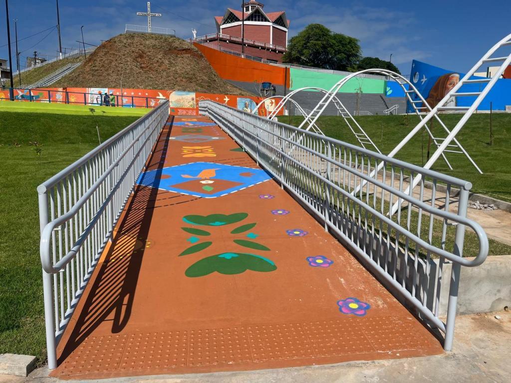 Para Chagas, que cresceu próximo à Igreja dos Capuchinhos, contribuir com a revitalização de um espaço que sempre fez parte de suas memórias é muito gratificante. “Nasci no conjunto Dom Pedro e, quando criança, via a igreja iluminada ao longe, como uma coroa. Pintar aqui me fez reviver essa lembrança. O mural sobre São Judas Tadeu foi uma oportunidade de traduzir em arte uma devoção muito presente no bairro. Também pintei a concha acústica com a imagem de Frei Miguel e, na rampa de acessibilidade, fiz alusão aos tapetes de Corpus Christi. Durante o tempo que estive aqui, percebi a ansiedade da comunidade em ver a praça pronta e isso mostra como a arte cria sentimento de pertencimento”, relatou.