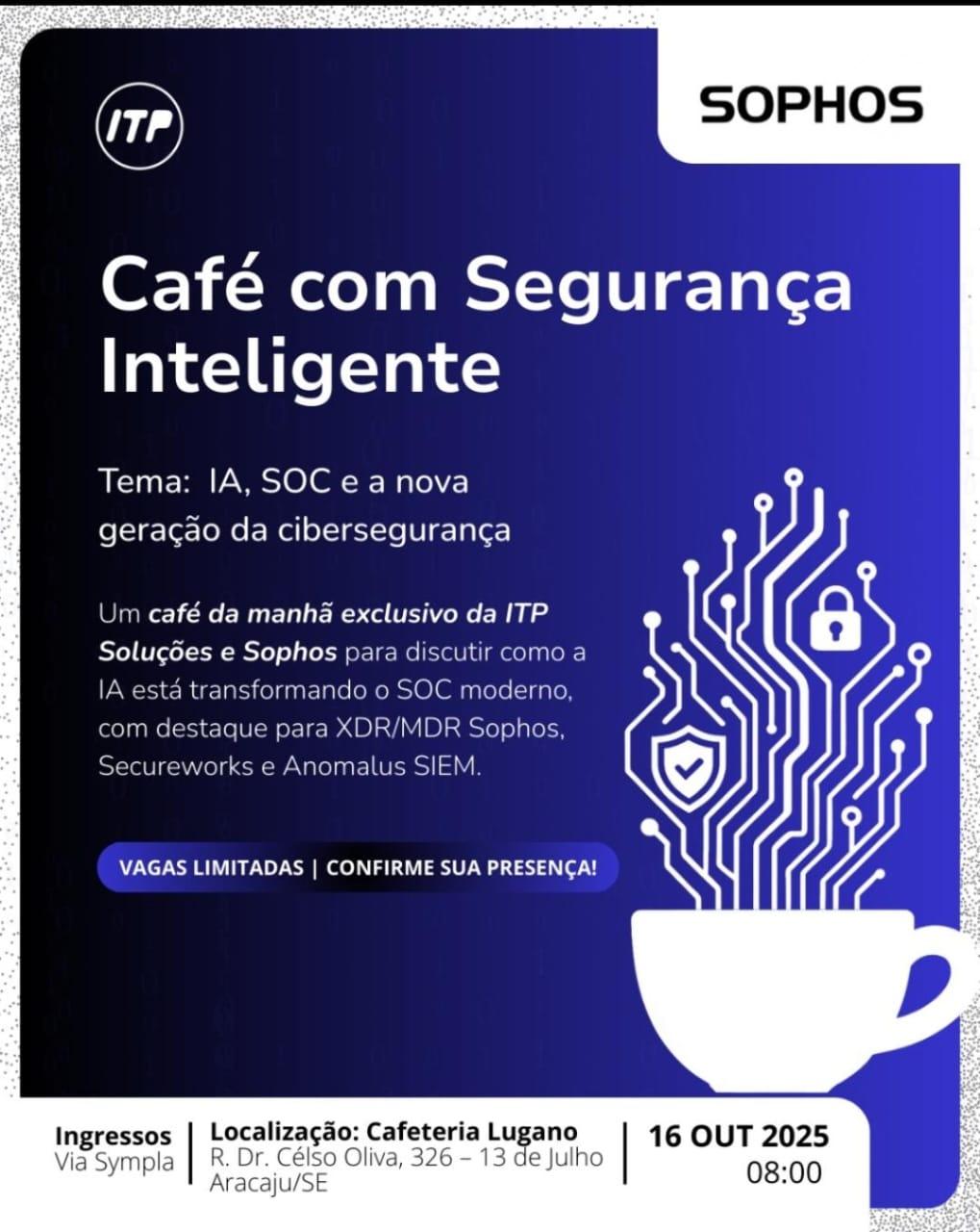 A Prefeitura de Aracaju, por meio da Secretaria Municipal da Fazenda (Semfaz), participou, na manhã desta quinta-feira, 16, do evento “Café com Segurança Inteligente”, promovido pela ITP Soluções, em parceria com a empresa de tecnologia Sophos, em Aracaju. O encontro teve como tema “IA, SOC e a nova geração da cibersegurança” e reuniu especialistas e profissionais do setor para discutir as transformações que a Inteligência Artificial vem promovendo nos Centros de Operações de Segurança modernos, ou Security Operations Centers (SOC).