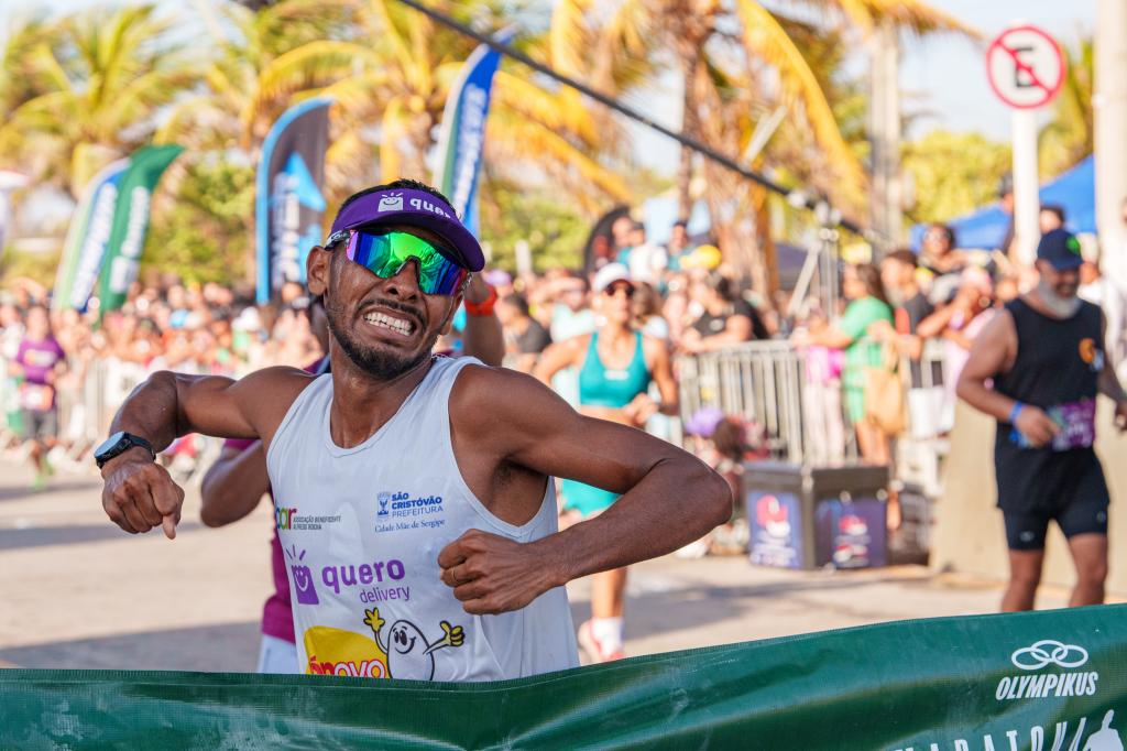 O atleta profissional João Marcos Santos, 29 anos, subiu no lugar mais alto do pódio durante a Maratona de Aracaju, realizada neste domingo, dia 26, na capital sergipana. O vencedor concluiu o percurso de 42 km com o tempo de 2h 30min e 07 seg. “Eu disse que iria ganhar a prova e isso aconteceu graças a muito treino e o apoio da família”, festejou o atleta de São Cristóvão.