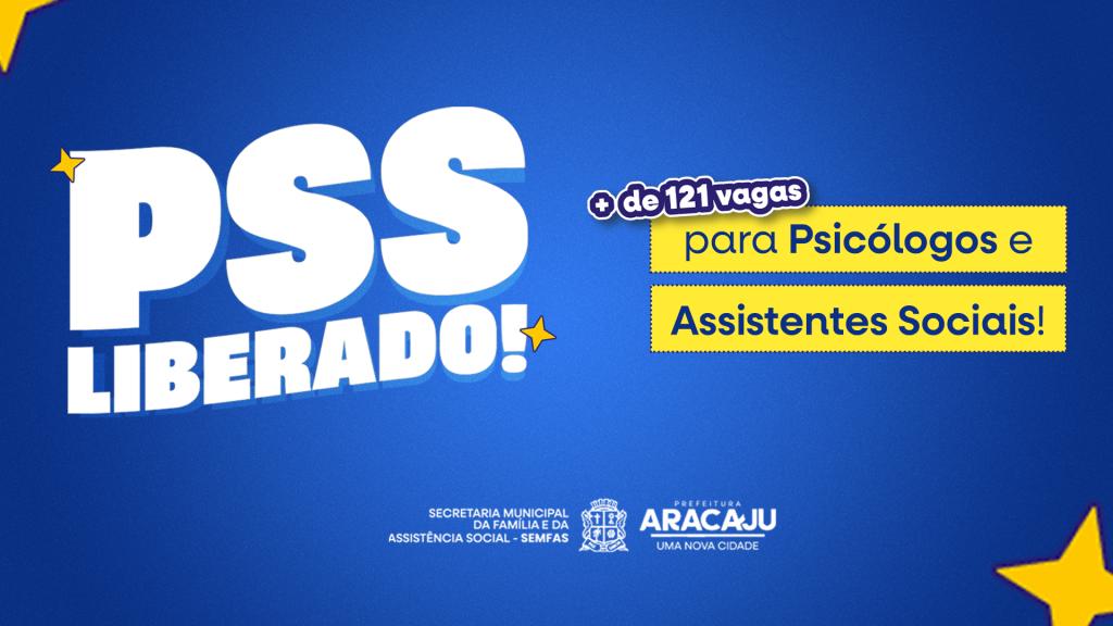 A Prefeitura de Aracaju, por meio da Secretaria Municipal da Família e da Assistência Social (Semfas), abre nesta quarta-feira, 5, as inscrições para o Processo Seletivo Simplificado (PSS) destinado à contratação imediata de 121 profissionais de nível superior nas áreas de Serviço Social e Psicologia. O processo seletivo tem caráter temporário e será realizado até a efetivação do Concurso Municipal Unificado (CMU).
