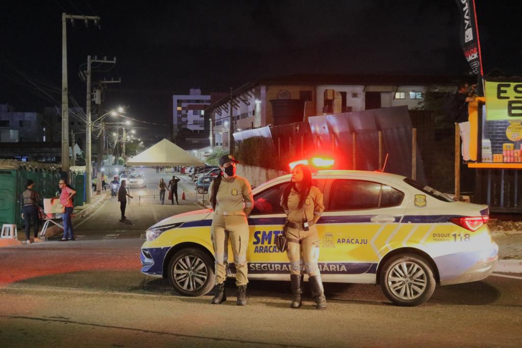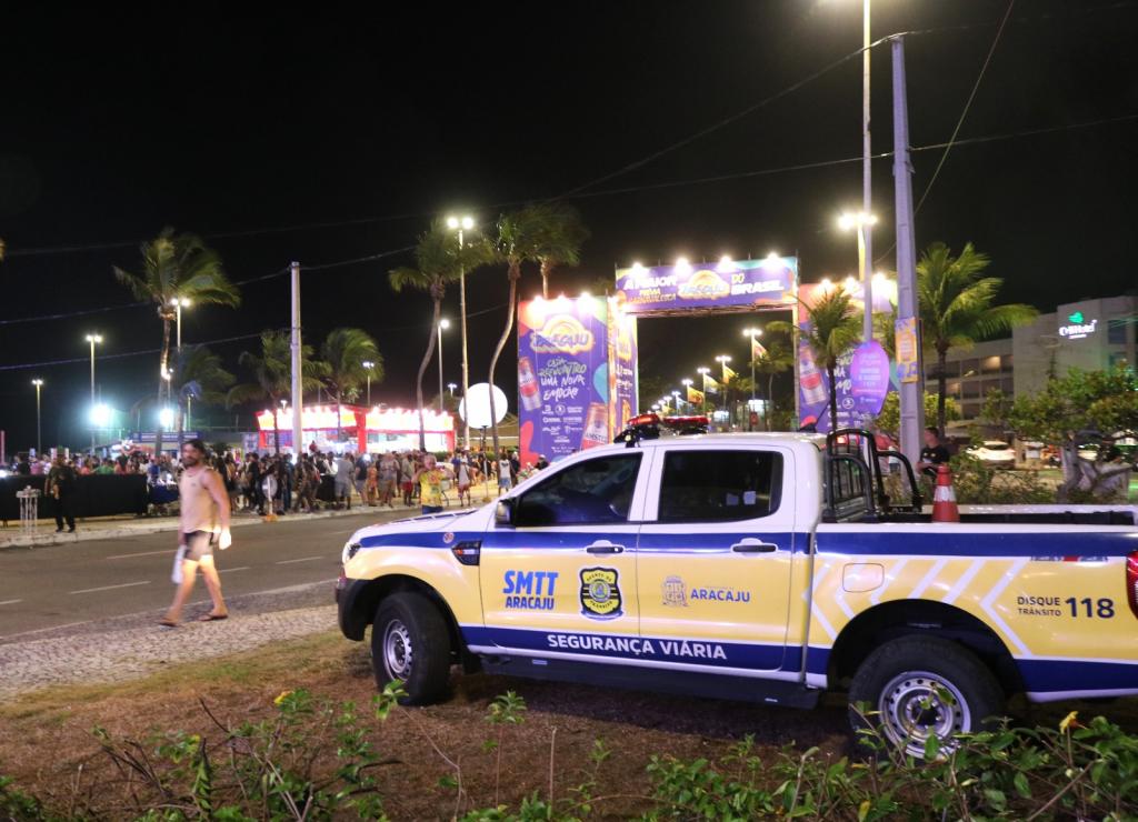 Para a primeira noite, que teve como público os foliões do Camarote Aju, a SMTT mobilizou um efetivo de 15 agentes de trânsito. Em escala de revezamento, eles ficaram distribuídos em locais estratégicos: dois bloqueios foram realizados na Avenida Santos Dumont, em ambos os sentidos, no trecho compreendido entre o retorno do Hotel Sesc Atalaia e o retorno dos Lagos, e o fluxo de carros foi desviado para ruas paralelas.