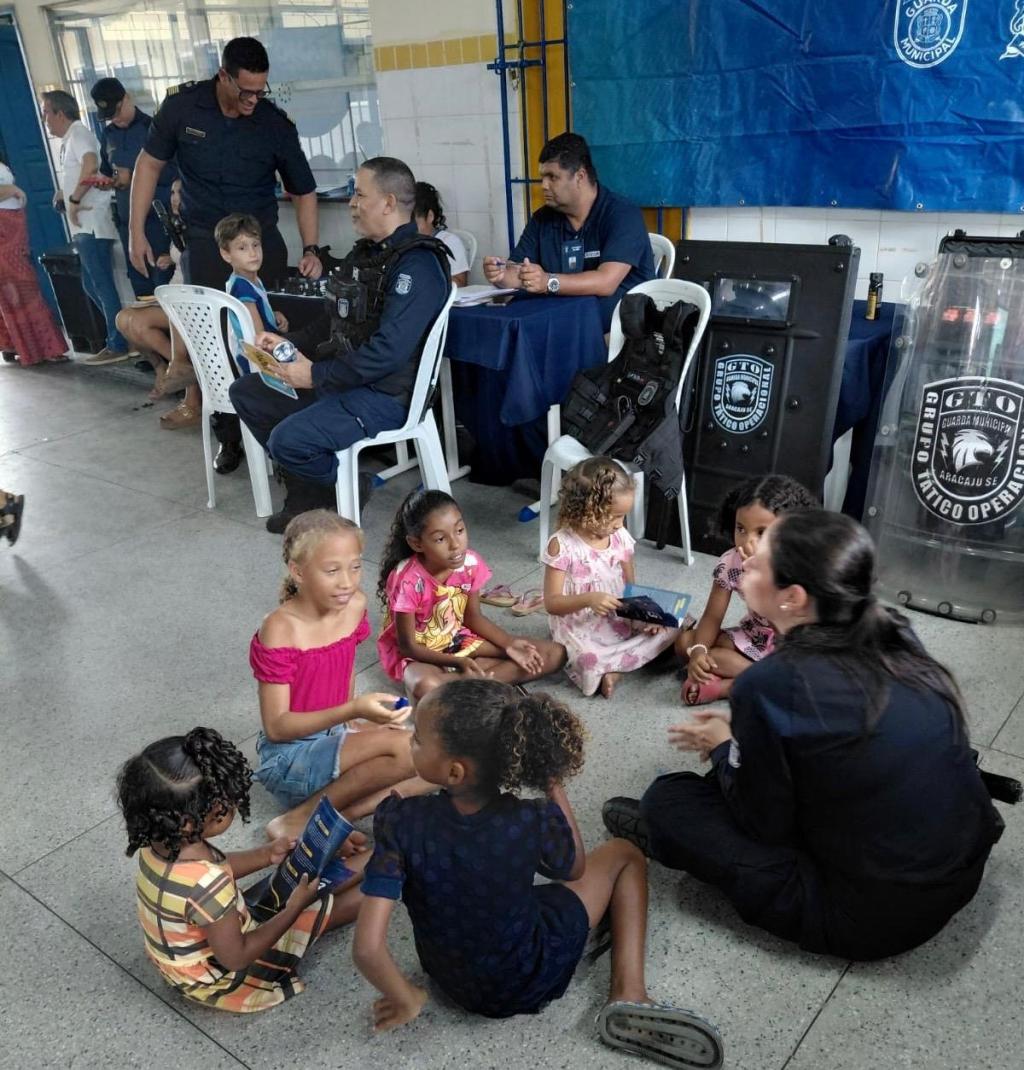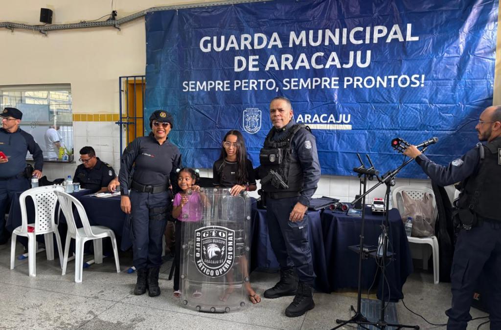 Por trás da imagem, a alegria de conhecer de perto o trabalho da Guarda Municipal de Aracaju (GMA). Parte das ações desenvolvidas pelo órgão, vinculado à Secretaria da Defesa Social e da Cidadania (Semdec), integrou a 4ª edição do Tamo Junto. O evento ocorreu neste sábado, 22, na Escola Municipal de Ensino Fundamental Oviêdo Teixeira, no bairro Olaria.
