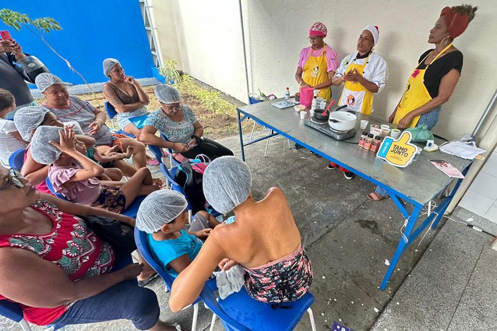 Fátima Ramos, moradora do bairro, soube do evento pela televisão e decidiu aproveitar o sábado para aprender, se divertir e participar das atividades culinárias do Tamo Junto.