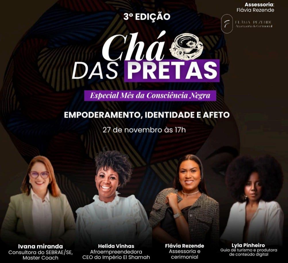 Acontece nesta quinta-feira, 27, a 3ª edição do Chá das Pretas, iniciativa que celebra, valoriza e fortalece o protagonismo das mulheres negras em Sergipe. A edição de 2025 conta com o apoio da Prefeitura de Aracaju, por meio da Secretaria Municipal do Respeito às Políticas para as Mulheres (SerMulher), e será realizada a partir das 17h30, no Le Café. A ação sociocultural é promovida pelo Império El Shamah e integra a programação do Mês da Consciência Negra no município.