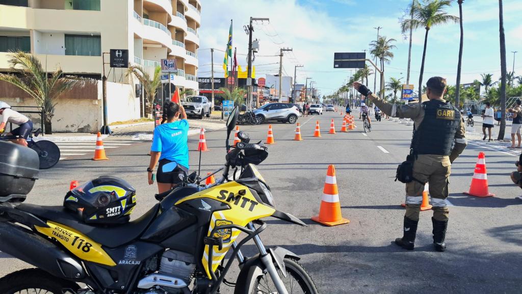 A Avenida Santos Dumont, na Orla da Atalaia, foi um dos trechos mais movimentados, com bloqueio total no sentido Praias–Centro e interdição parcial na direção oposta. Já a avenida Inácio Barbosa recebeu atenção especial por conta da etapa de ciclismo, permanecendo completamente fechada para garantir segurança aos atletas.