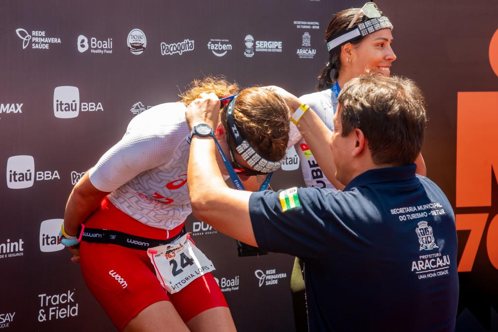 No feminino, o pódio foi inteiramente brasileiro, com Mikelle Coelho em terceiro lugar, Pietra Meneghini em segundo e a campeã Vittória Lopes, que completou o percurso em 04h13min04s, sob o forte sol que marcou a competição na capital sergipana.