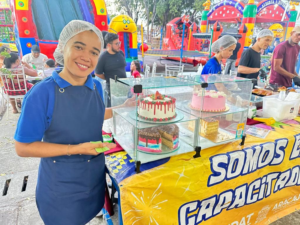Outra expositora que reforça a importância da iniciativa é Luzia Oliveira, também aluna qualificada da Fundat. Ela já participou dos cursos de bolos decorados, manipulação de alimentos e, nesta terça-feira, realizará a capacitação em precificação. Para Luzia, o espaço cedido pela Fundat na Praça Tobias Barreto tem sido decisivo para quem está iniciando no empreendedorismo.
