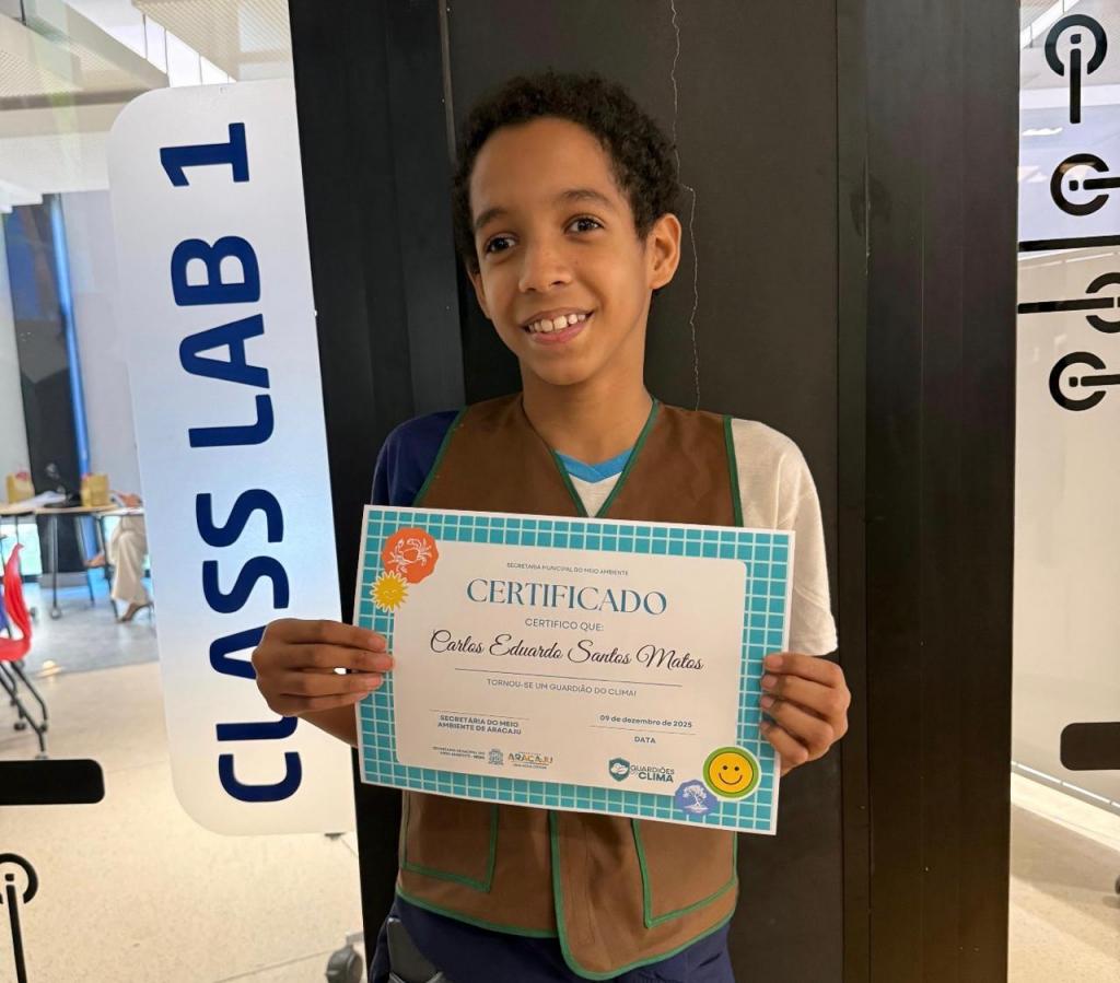 “O projeto foi criado para fortalecer nossas crianças diante dos desafios das mudanças climáticas, que atingem especialmente as periferias. Mas o que vimos ao longo do ano foi ainda maior. Vimos meninas e meninos desenvolvendo pertencimento, leitura crítica do território e a capacidade de enxergar problemas e propor soluções. Vimos crianças que não apenas aprendem, mas que ensinam. Que não apenas entendem o seu papel no mundo, mas que levam esse papel para dentro de casa e para cada espaço onde convivem. Agradeço à Secretaria de Meio Ambiente, aos parceiros e às famílias que confiaram no projeto. Mas, principalmente, agradeço às crianças. Vocês nos mostram que cuidar de Aracaju é uma construção coletiva e que cada atitude conta. Vocês são Guardiões do Clima, mas também são guardiões do futuro”, declarou.