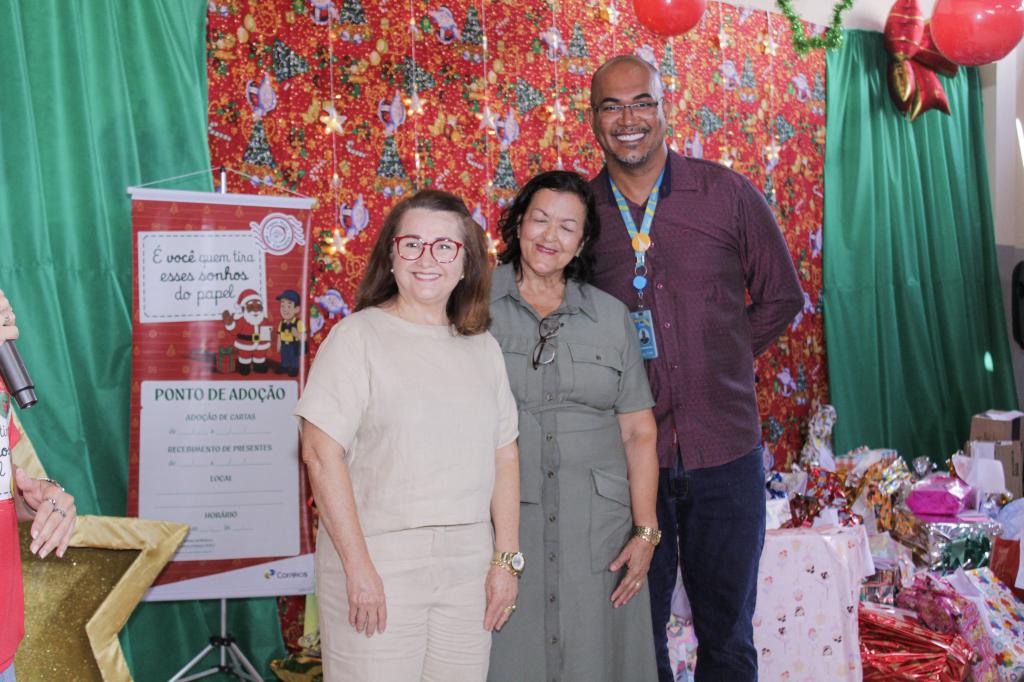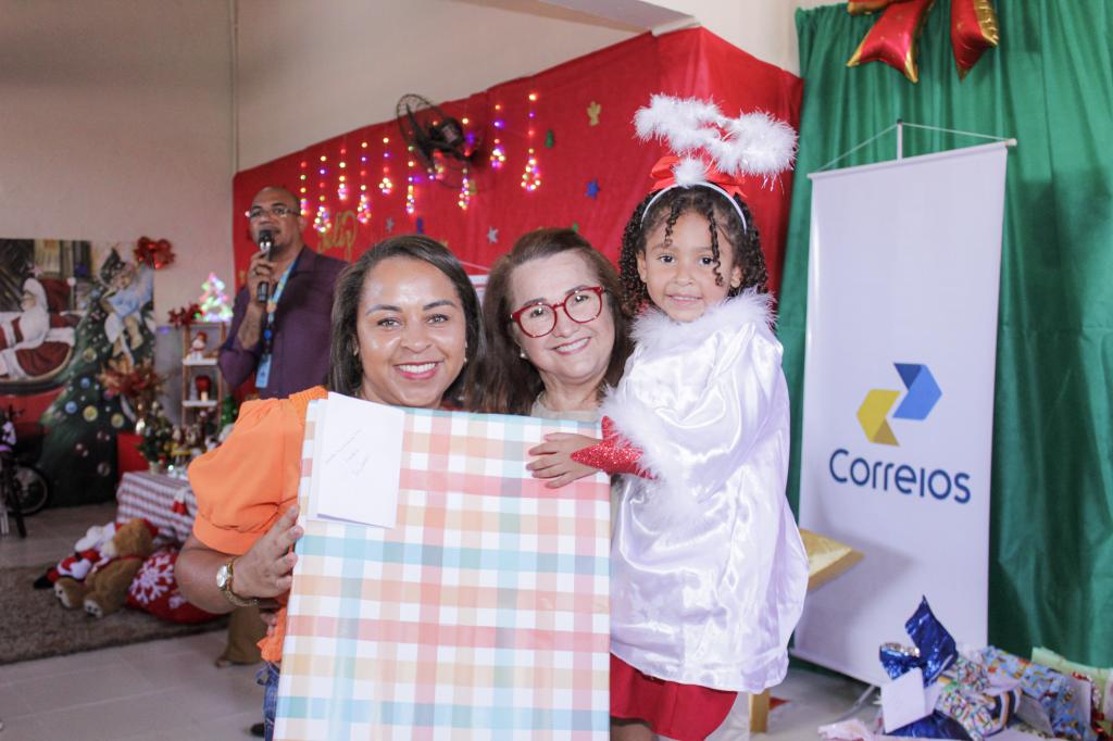 A diretora do Departamento de Educação Básica da Semed, Osvaldina Ribeiro, enfatizou que o apadrinhamento de 100% das cartinhas de uma escola inteira é fruto de uma parceria inédita da pasta com os Correios e parabenizou a todos os envolvidos. “É uma alegria muito grande estarmos hoje aqui. Uma força-tarefa foi montada com a coordenação da secretária Edna Amorim, para que todas as crianças deste Centro Social recebessem o seu presente de Papai Noel. Parabéns à Secretaria por esta ação, aos Correios como nosso parceiro, e à comunidade que acredita na escola pública”, destacou Osvaldina Ribeiro.