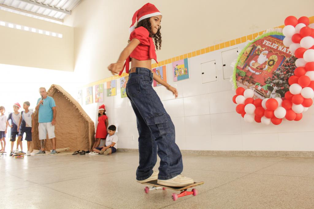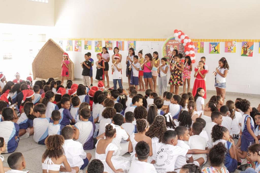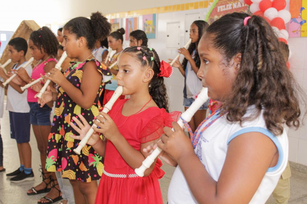 O aluno Luiz Miguel Alves, do 4° ano, a partir de práticas com a flauta, se sente entusiasmado e inspirado durante sua apresentação de música: “Eu aprendi que com flauta a gente pode se acalmar e também fazer as coisas com mais atenção. A música é ouro na nossa vida”.