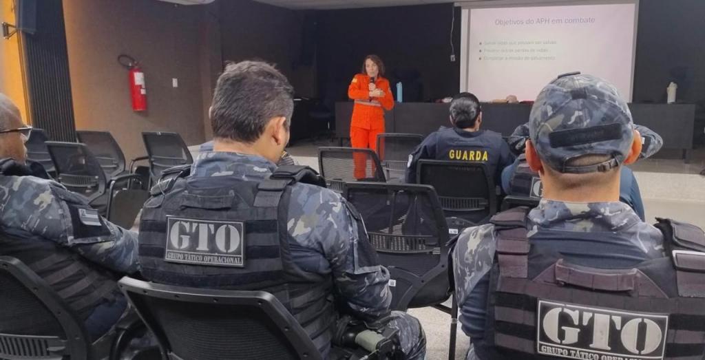 A Coordenadoria de Formação e Aperfeiçoamento da Guarda Municipal de Aracaju (CFA/GMA), órgão que integra a Secretaria Municipal da Segurança Pública e da Cidadania (SSM), promoveu nesta terça-feira, 16, uma aula introdutória do curso de Atendimento Pré-Hospitalar (APH) Tático. A iniciativa tem o objetivo de capacitar, ainda mais, os agentes para atuação em situações de risco durante o exercício da função.