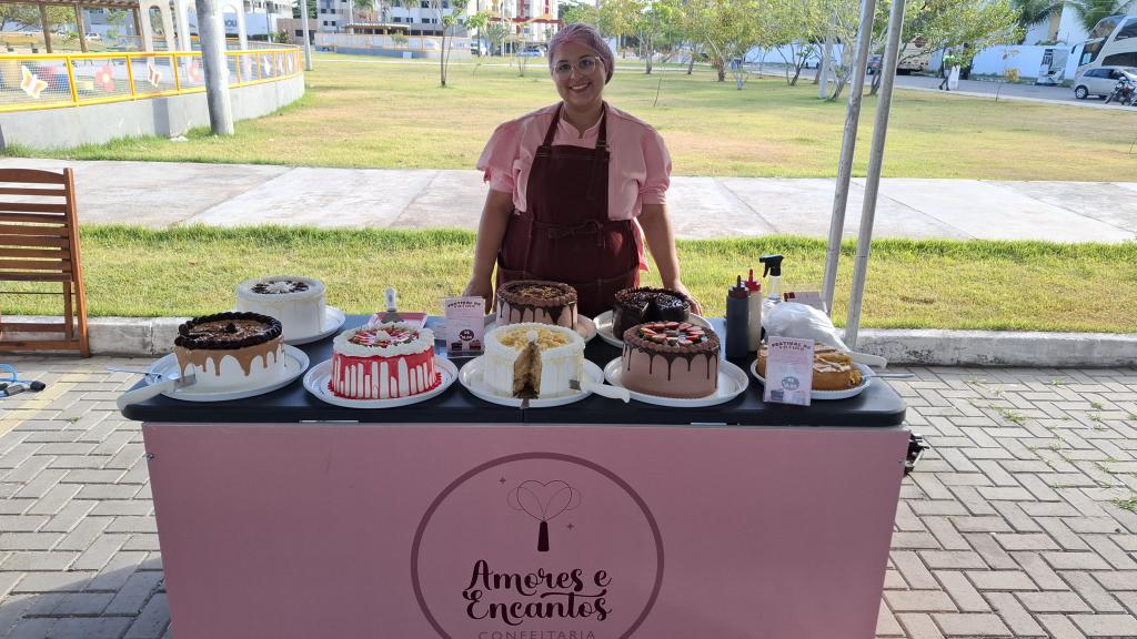 A confeiteira Paula Fernanda Andrade, que desenvolve o projeto "Amores e Encantos Confeitaria Artesanal", contou sobre a importância das feirinhas que promovem renda e novas possibilidades para empreendedores como ela. “É a primeira vez que participo desta feirinha e achei muito importante porque dá espaço para nós empreendedores levar nosso nome adiante. Principalmente nos bairros que não tem um centro gastronômico, mas que levamos um pouco dos nossos produtos para que a população conheça. Eu também estou com um projeto particular da minha confeitaria nas praças que iniciei no dia 5 de dezembro, que consiste no festival de fatias que levo nas praças de cada bairro para que os moradores conheçam meu produto. E assim fortaleço minha marca, algo que acabou viralizando na internet”, explicou.