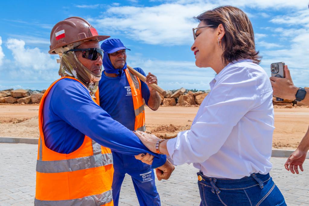 Prefeita Emília Corrêa visita obra da Orla do Rio Sergipe, que já ultrapassa 70% de execução