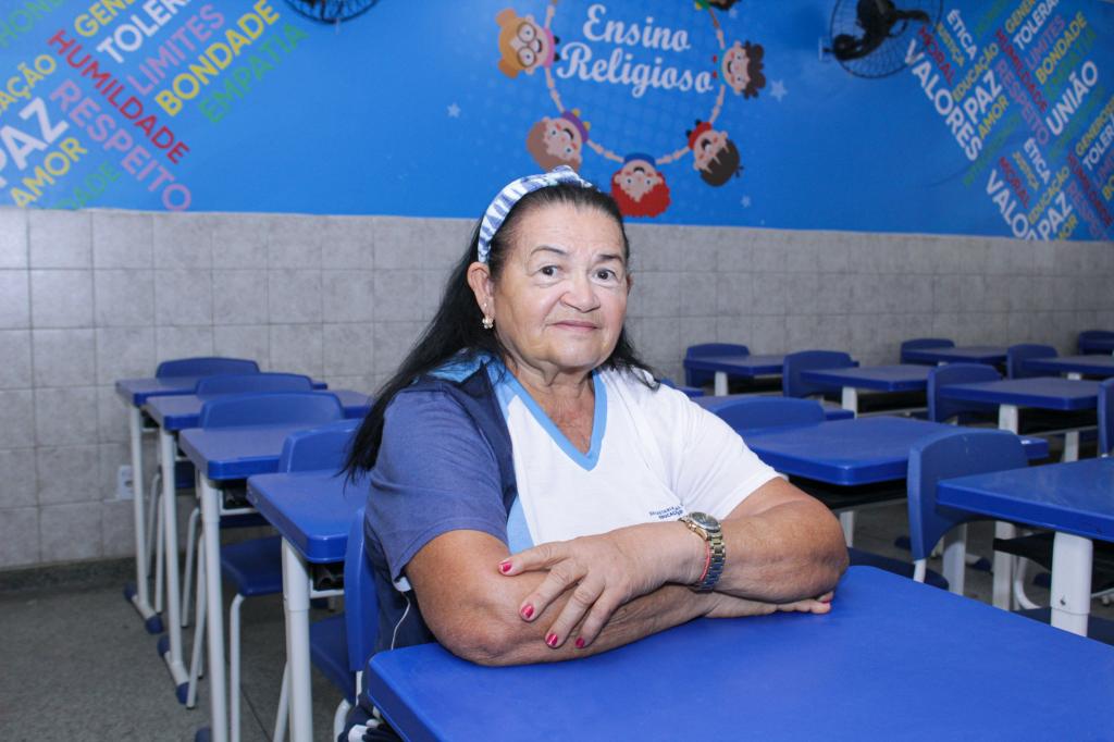A dona de casa Maria Helena Santos tem 76 anos e é aluna da Escola Municipal Manoel Bomfim, no conjunto Bugio. Ela diz que já tinha interesse em ampliar os conhecimentos, mas a principal motivação para voltar a estudar foi o atendimento que recebeu na instituição, desde quando entrou até hoje. “Comecei na EJA em 2023, fui bem recebida, com carinho e daí para cá eu comecei a frequentar a escola, onde aprendi muita coisa e continuo aprendendo. Eu não perco nada que tem na escola, passeio, entretenimento, tudo que oferece eu participo. Gosto muito dos professores, da direção e da coordenação, eles são espetaculares. Além disso, a escola é toda climatizada, nós recebemos material escolar, livros e fardas, e tem refeitório pra gente fazer a nossa refeição. Eu só tenho a agradecer”, afirma Maria Helena.