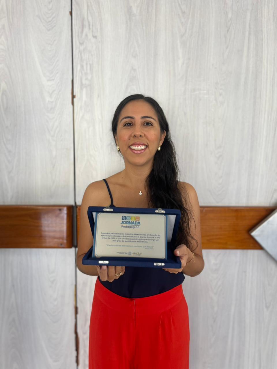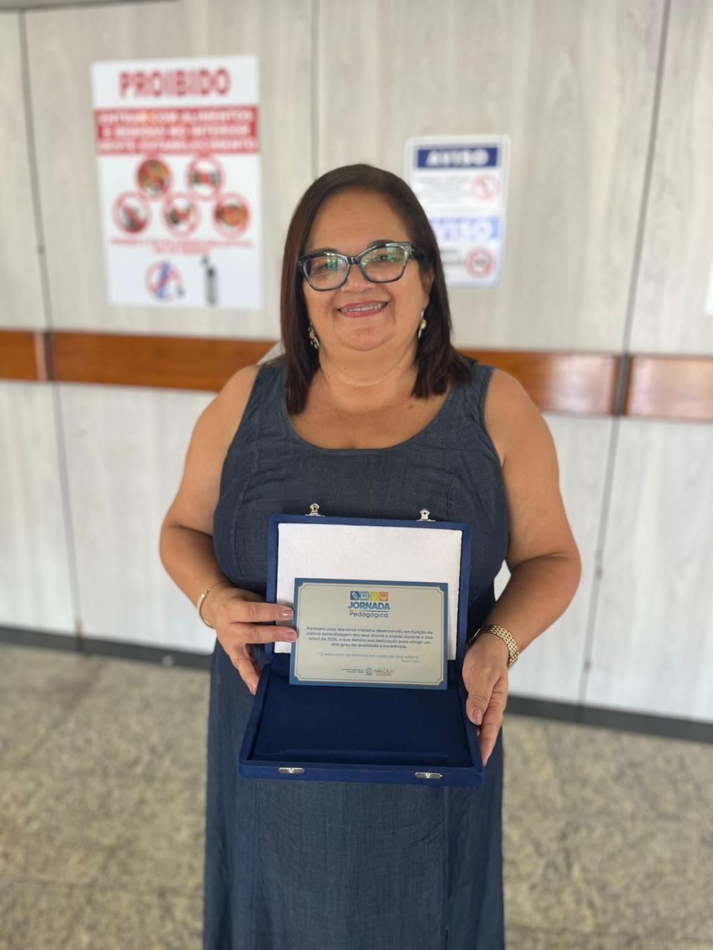 Na abertura da Jornada, Denise de Melo foi uma das professoras homenageadas. Ela foi reconhecida pelos seus trabalhos no ano de 2025 como coordenadora pedagógica da Escola Municipal Ana Luiza.  “Gostaria de agradecer às pessoas que fazem parte da Escola Ana Luiza. Gostaria de agradecer às professoras, funcionários, comunidade escolar e à diretora. Fico feliz porque esse é um reconhecimento do trabalho realizado dos sete anos que passei à frente da Coordenação Pedagógica”, declarou.