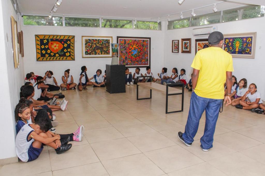 Cores vibrantes, presentes em obras compostas por elementos remontam à identidade cultural de Aracaju e de Sergipe, expostas em quadros, tapeçaria, cerâmica e madeira, chamaram a atenção dos alunos. A partir de parceria com a galeria, o diretor criativo e arquiteto do estúdio W +, Wesley Lemos, foi o responsável por contar a história do artista às crianças através da expografia.
