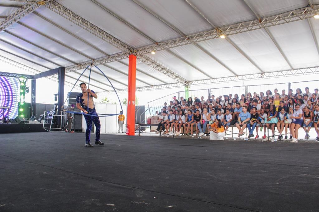 Verão Caju 2026: alunos da rede municipal assistem a espetáculo circense
