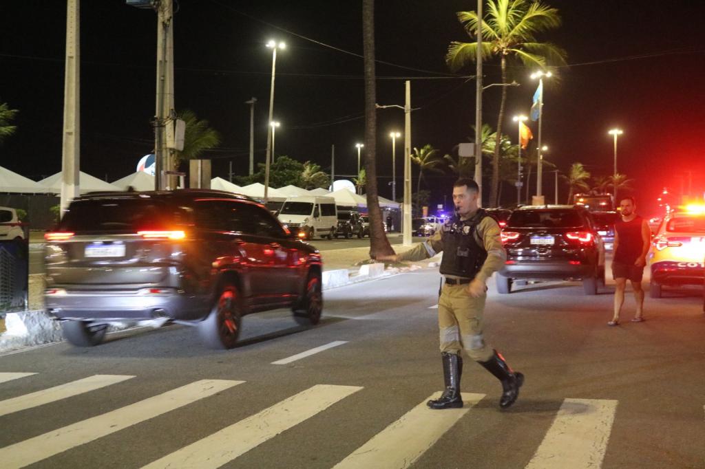 Já à noite, a SMTT atuou com um efetivo de 10 agentes e cinco viaturas, em uma ação planejada para preservar a integridade de motoristas e pedestres, ordenar o fluxo de veículos e garantir que o público aproveite a programação com mais conforto e segurança. E para facilitar ainda mais a chegada e saída do público, a SMTT disponibilizou pontos de embarque e desembarque para táxis, próximos à Passarela do Caranguejo.