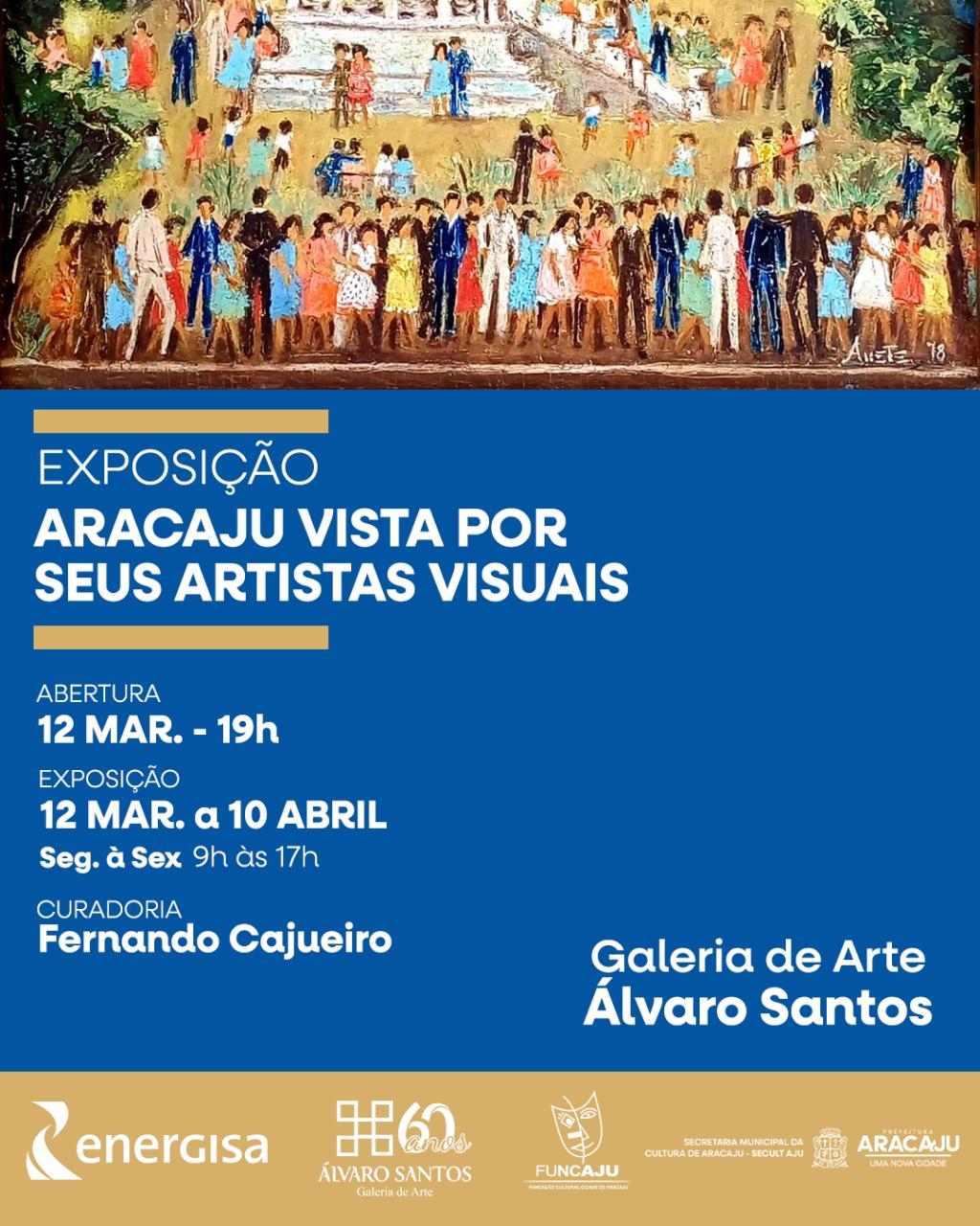 A Prefeitura de Aracaju, por meio da Fundação Cultural Cidade de Aracaju (Funcaju) e da Galeria de Arte Álvaro Santos, realiza no dia 12 de março, às 19h, a abertura da exposição ‘Aracaju Vista por Seus Artistas Visuais’. A mostra integra o calendário comemorativo pelos 171 anos da capital sergipana.