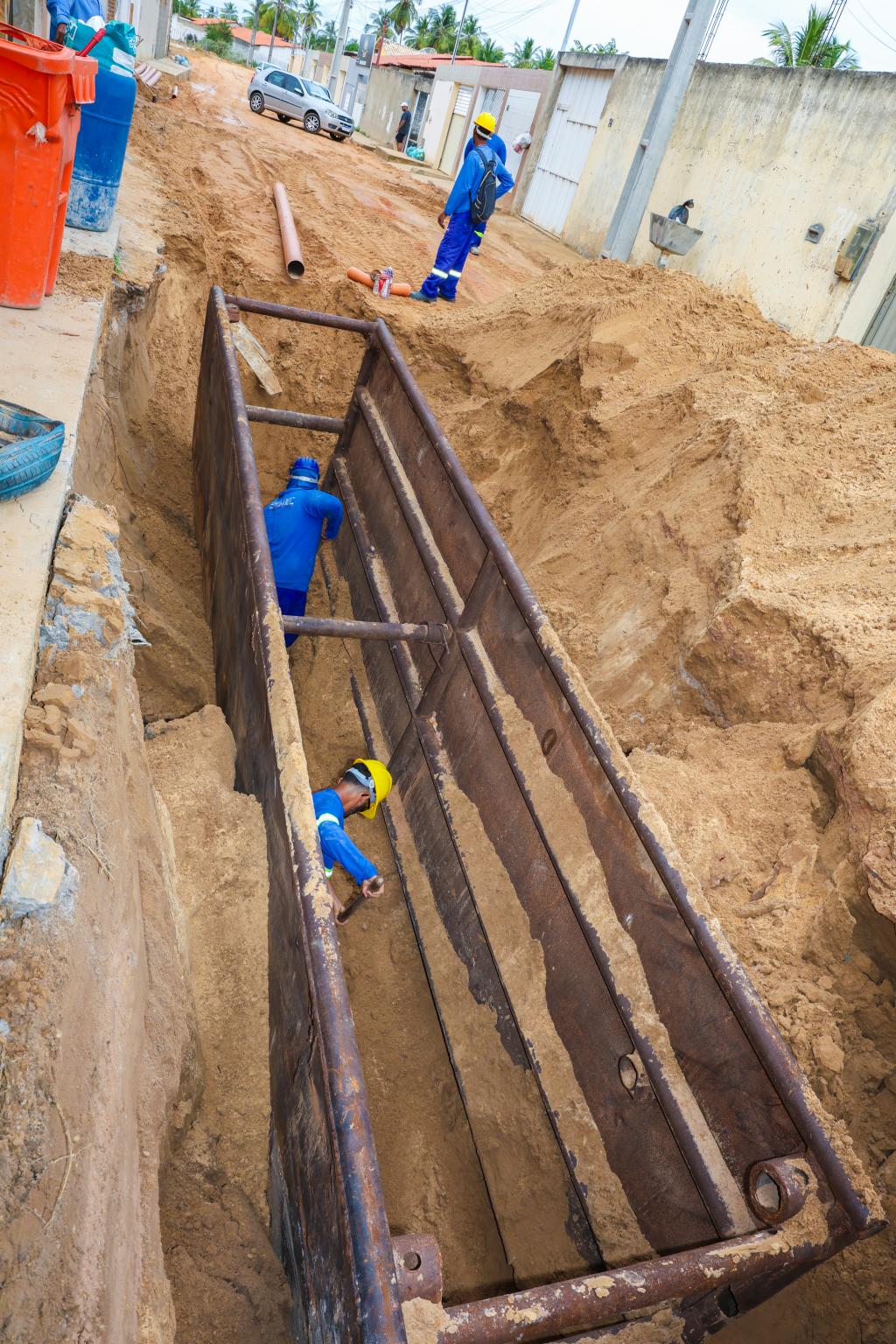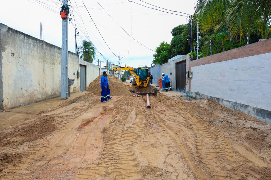 Paralelamente à macrodrenagem, a Prefeitura executa outras duas obras estruturantes. No bairro Mosqueiro, 40 ruas — incluindo a Orlinha Por do Sol — recebem serviços de drenagem, esgotamento sanitário e pavimentação. Em Areia Branca, 80 ruas estão sendo contempladas com os mesmos serviços. Considerando os dois bairros e os canais estruturantes, o conjunto das intervenções supera 50 quilômetros de obras de drenagem, pavimentação e esgotamento sanitário.